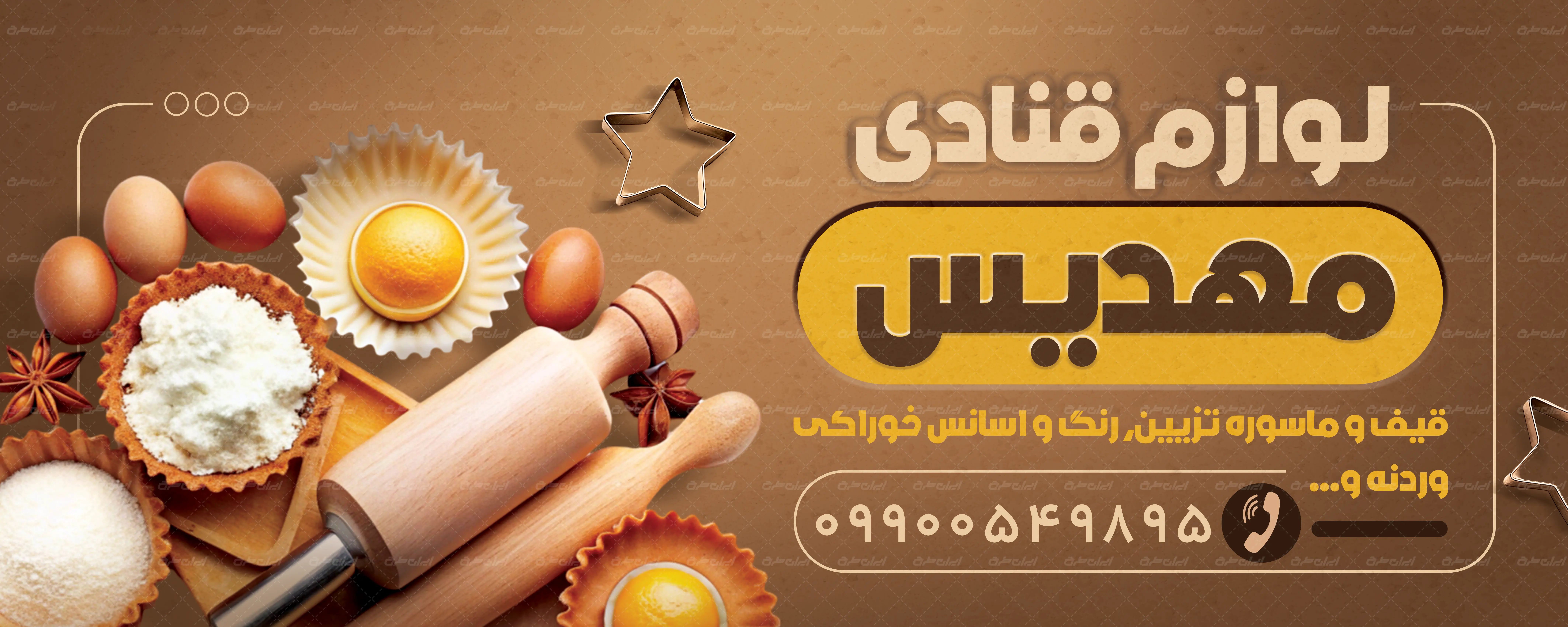 تیم ایران طرح طرح بنر لوازم شیرینی پزی جهت تبلیغات و بازاریابی این مکان را برای کاربران طراحی نموده است.