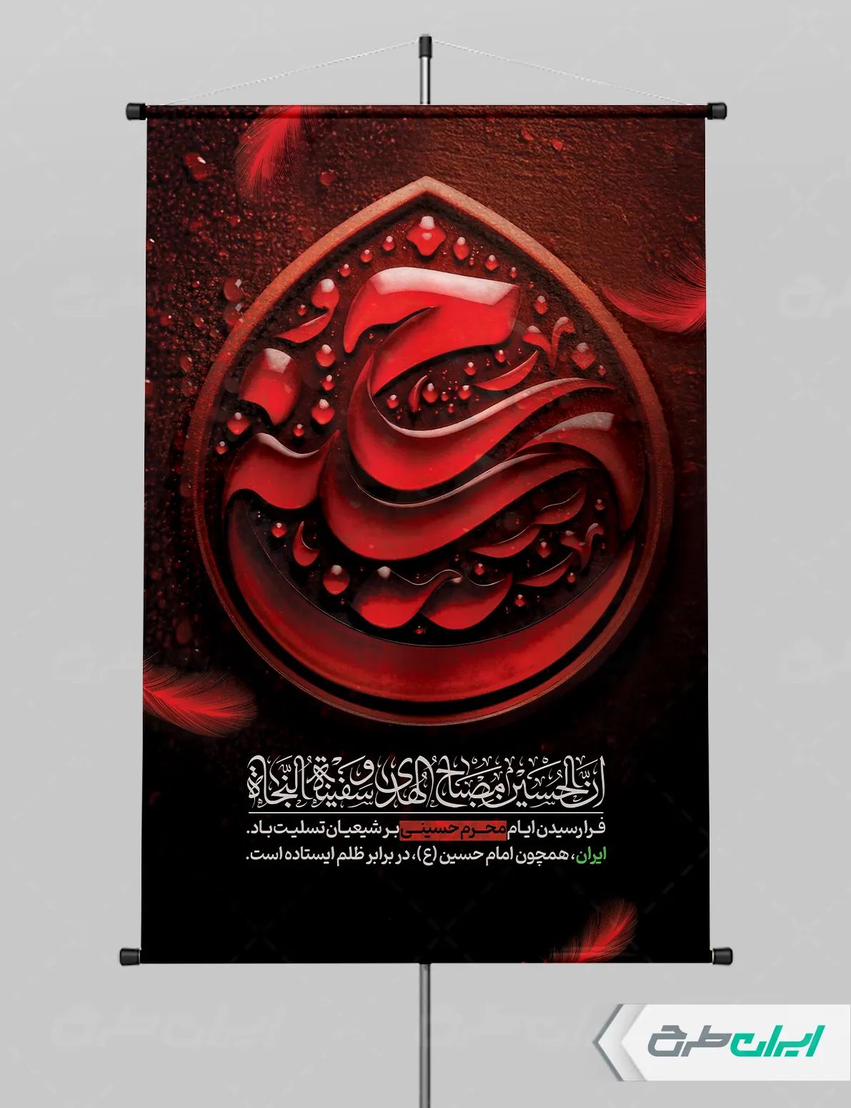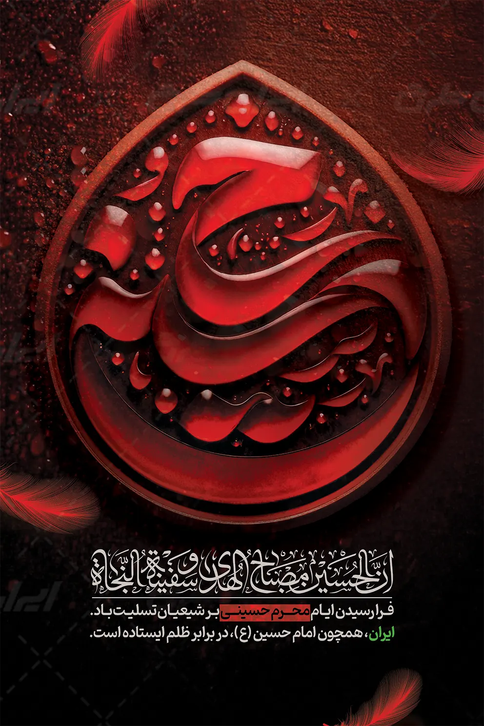 تایپوگرافی حسین و متن تسلیت ایام محرم می باشد که توسط طراحان ایران طرح در نرم افزار فتوشاپ طراحی شده است.
