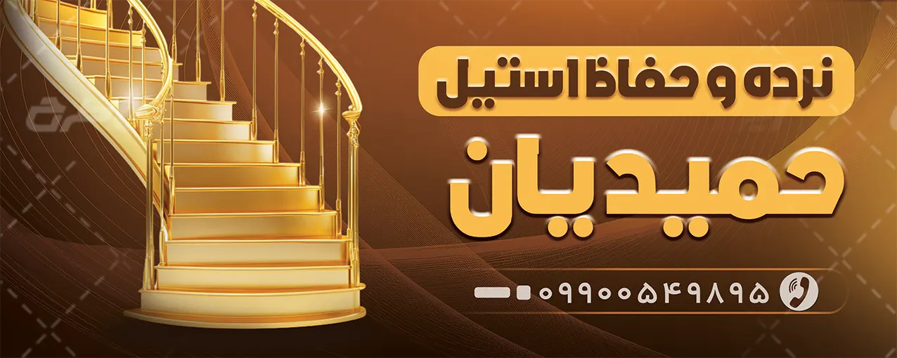 - طراحی شیک و کاربردی بنر کارگاه نرده استیل