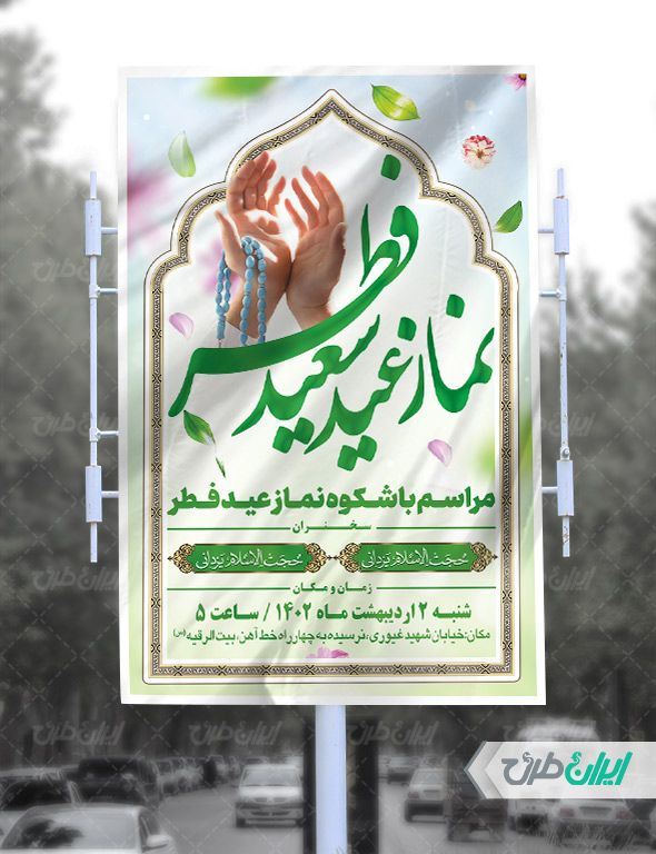 - طراحی بنر با استفاده از تصویر گل در طرح بنر عید فطر