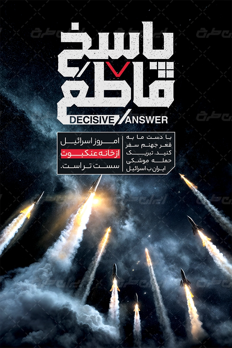تصویر موشک، تایپوگرافی پاسخ قاطع و متن مرتبط با این حمله موشکی است که توسط تیم خلاق ایران طرح طراحی شده است.