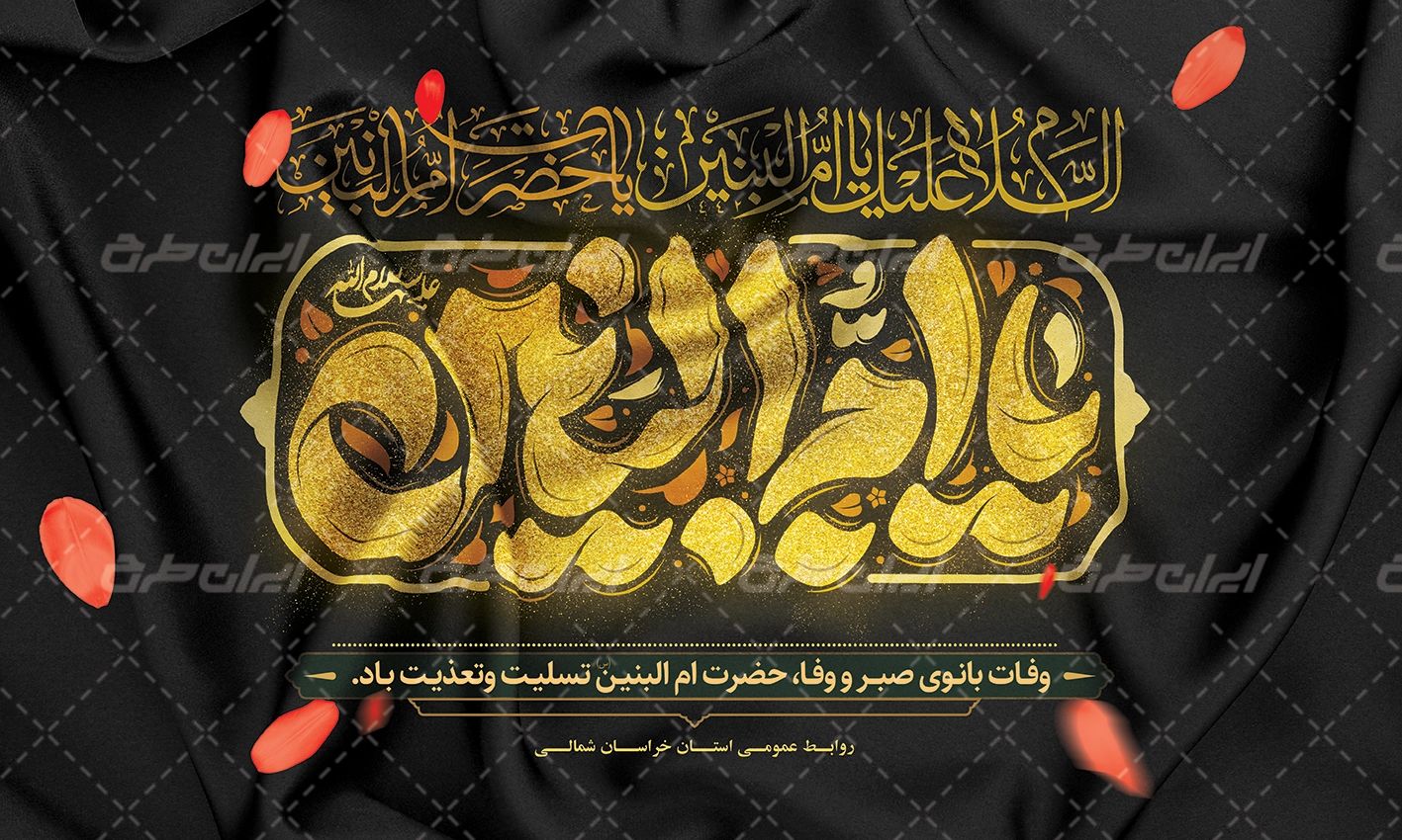 بنر وفات حضرت ام البنین، توسط تیم حرفه ای ایران طرح جهت استفاده کاربران سایت طراحی و به صورت لایه باز در دسترس کاربران قرار گرفته است.