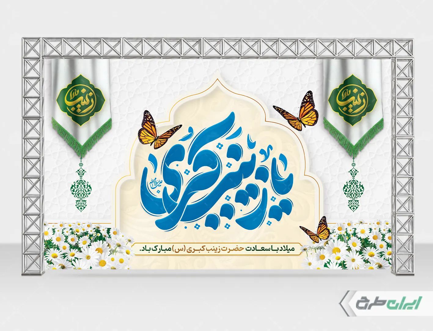 بنر لایه باز میلاد حضرت زینب (س)، توسط تیم حرفه ای ایران طرح جهت استفاده کاربران سایت طراحی و به صورت لایه باز در دسترس کاربران قرار گرفته است.