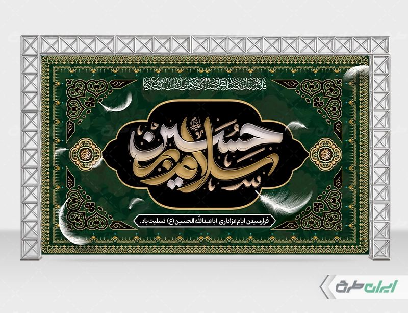 تایپوگرافی سلام بر امام حسین و تذهیب و متن مرتبط با ماه محرم می باشد که توسط طراحان ایران طرح در نرم افزار فتوشاپ طراحی شده است.