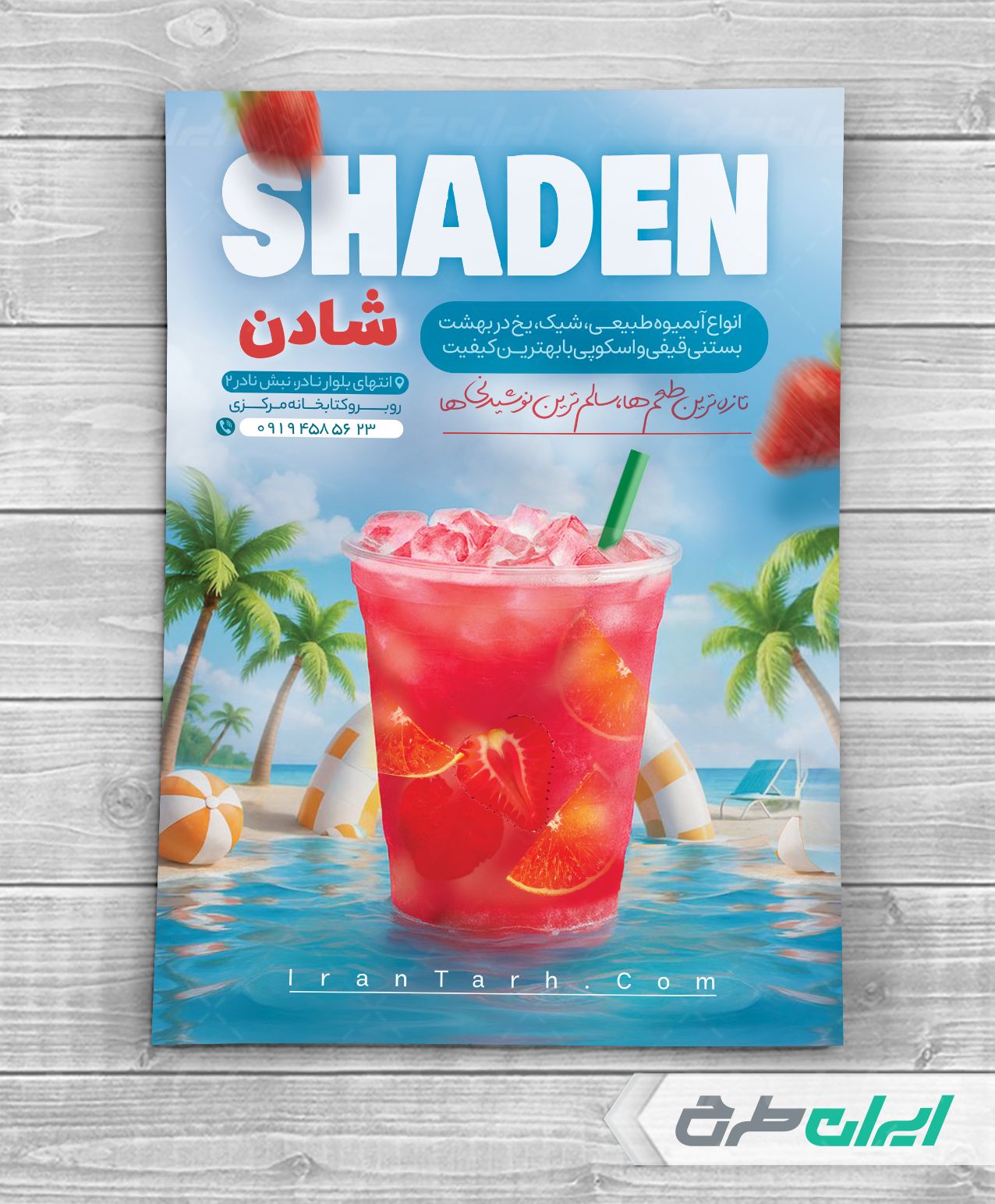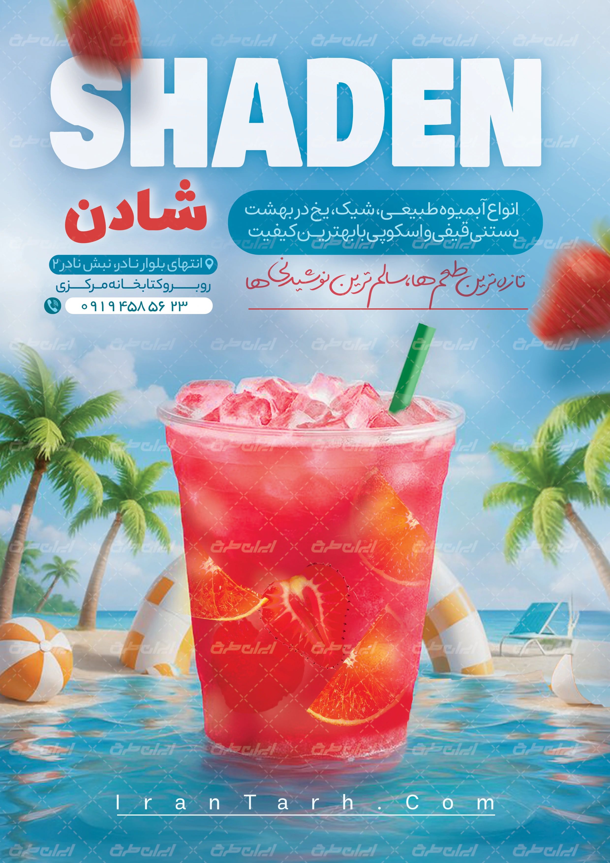 طرح تراکت آبمیوه سرا، جهت بازاریابی و تبلیغات این دسته از مغازه ها توسط تیم طراحان ایران طرح طراحی و در دسترس کاربران سایت قرار گرفته است.