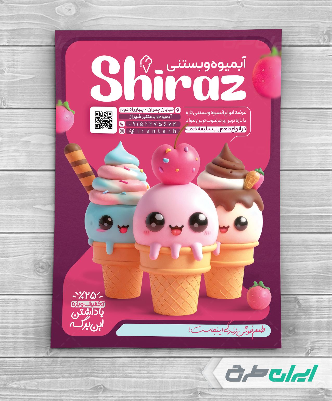 - استفاده از عکس با کیفیت بستنی که مناسب با طرح تراکت لایه باز آبمیوه سرا می باشد.