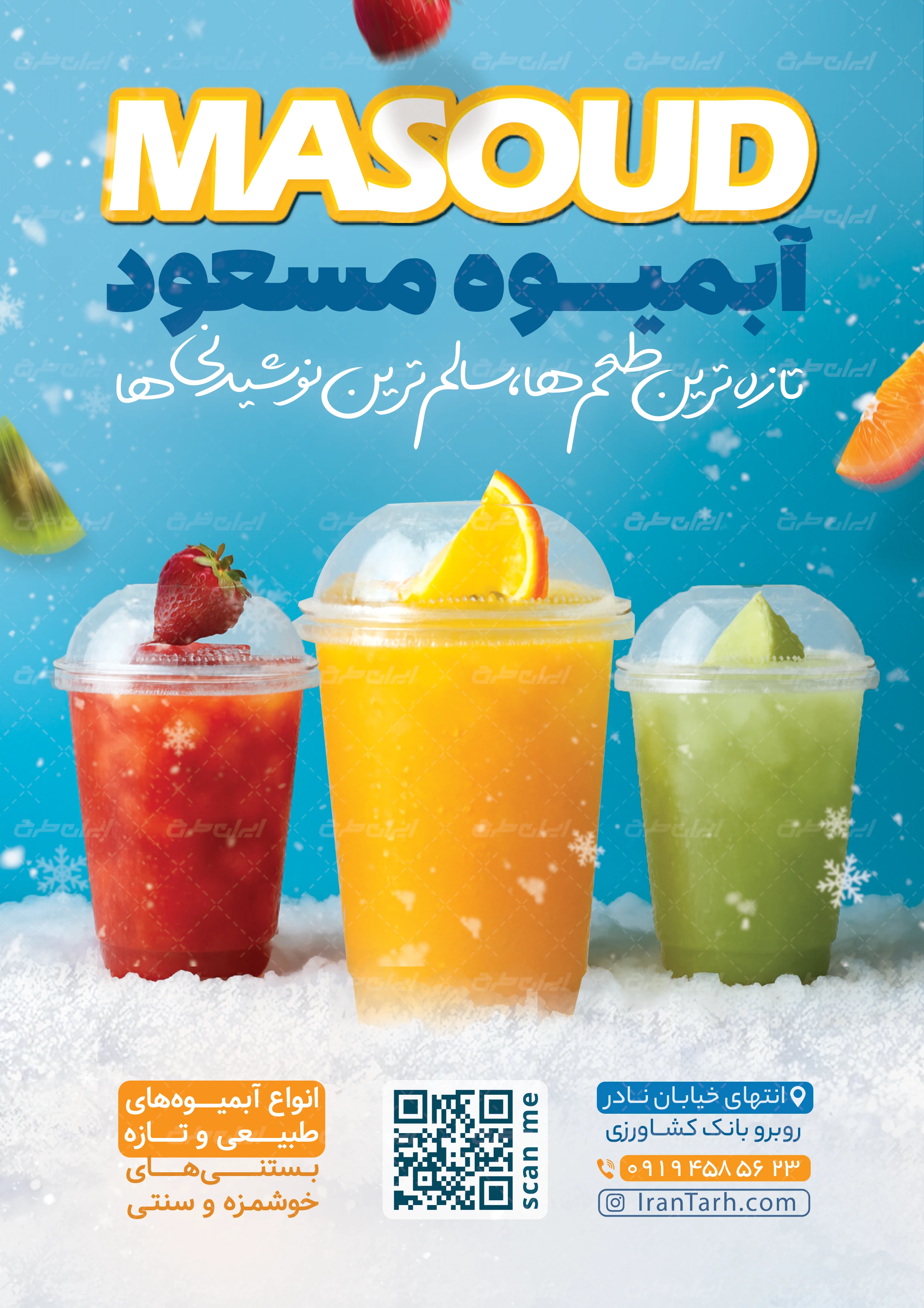 طرح تراکت آبمیوه سرا، جهت بازاریابی و تبلیغات این دسته از مغازه ها توسط تیم طراحان ایران طرح طراحی و در دسترس کاربران سایت قرار گرفته است.