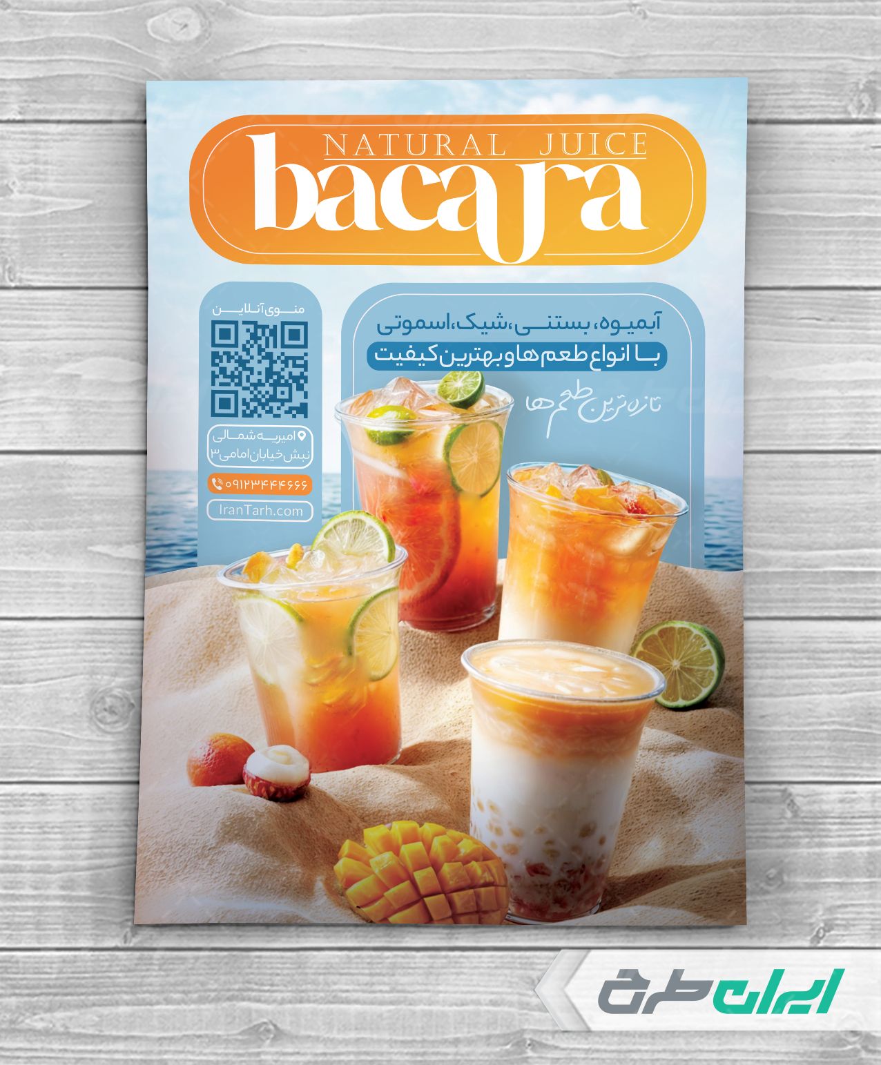 طرح تراکت آبمیوه سرا، جهت بازاریابی و تبلیغات این دسته از مغازه ها توسط تیم طراحان ایران طرح طراحی و در دسترس کاربران سایت قرار گرفته است.