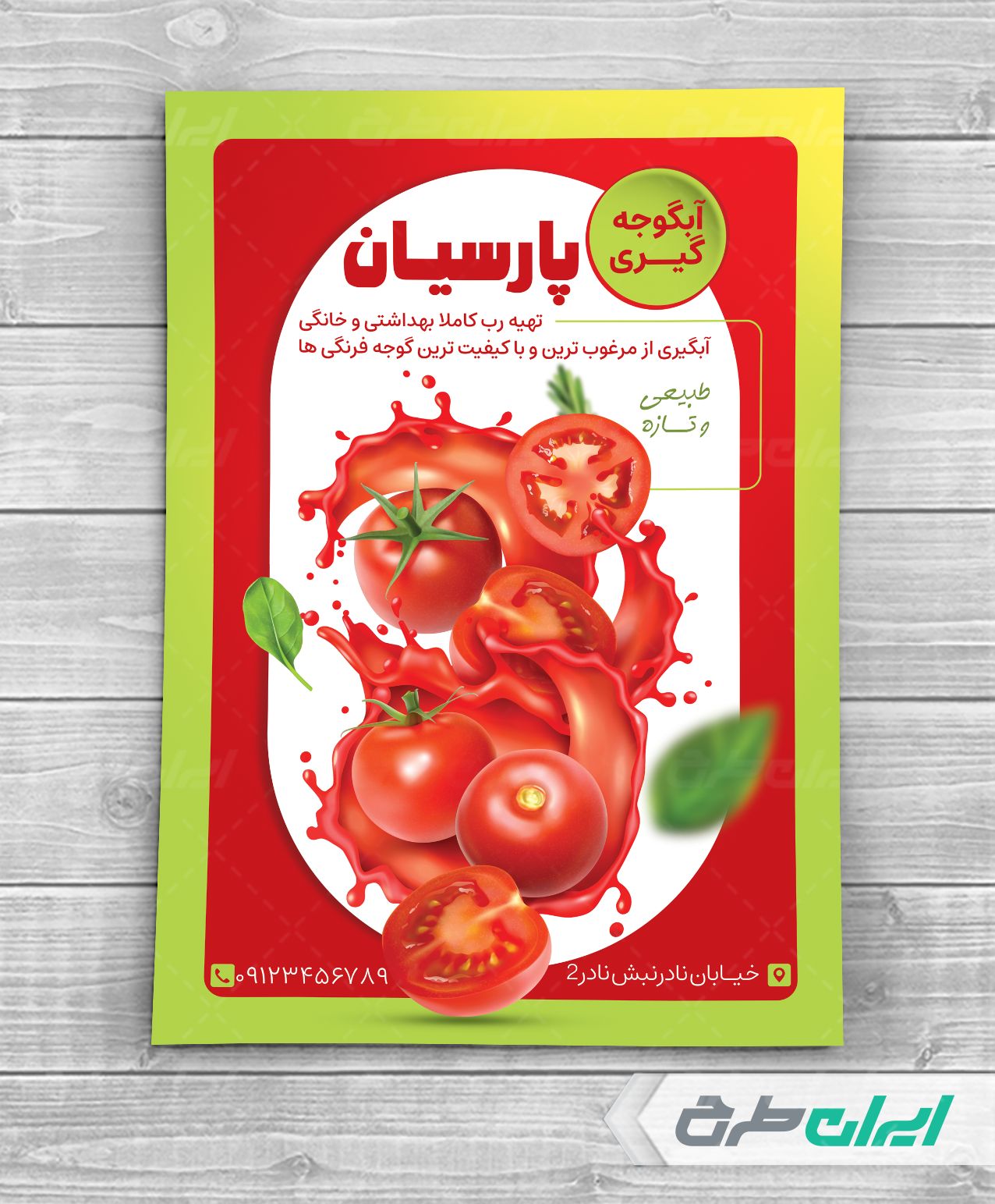 - طراحی ساده و کاربردی تراکت آب گوجه گیری