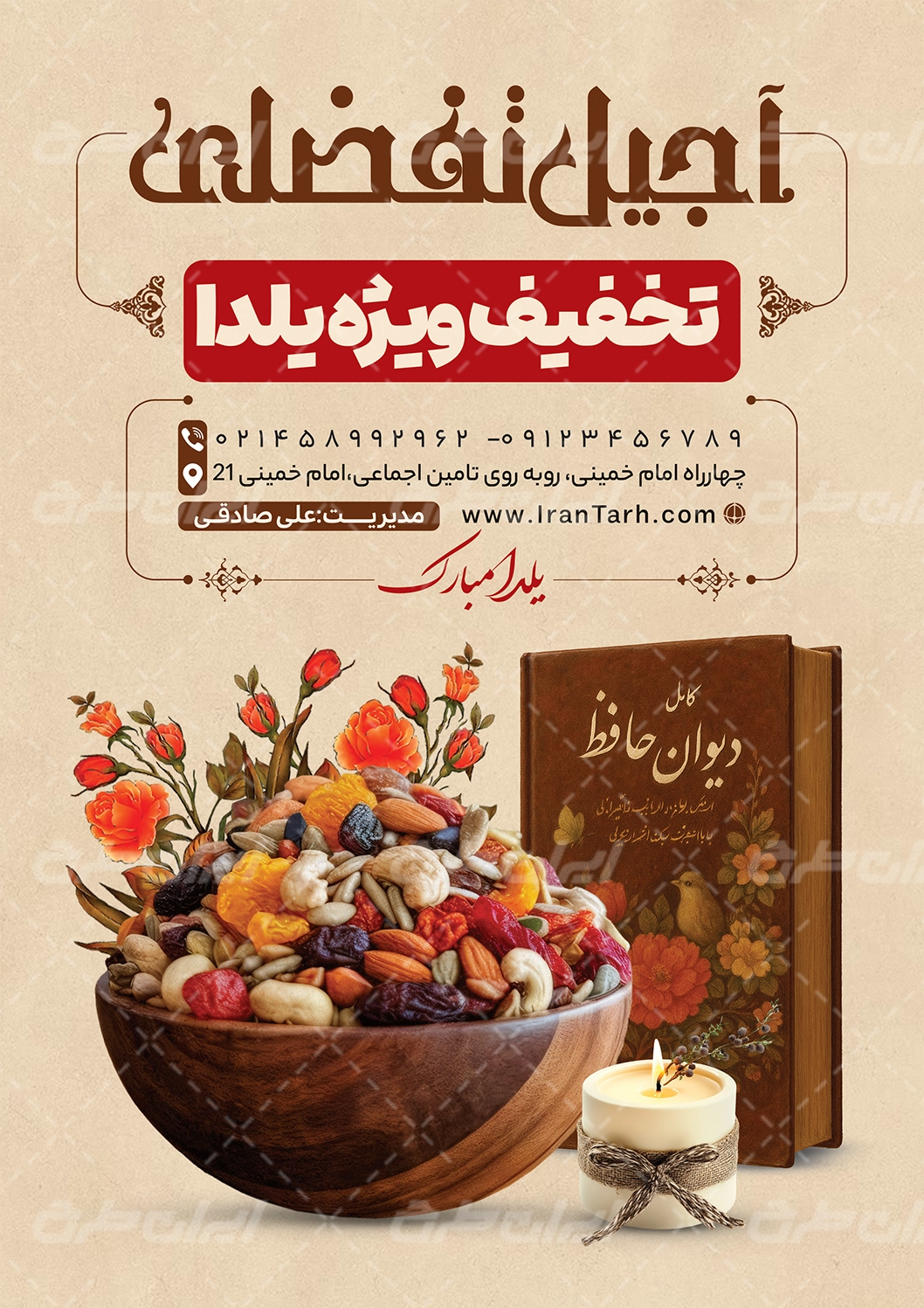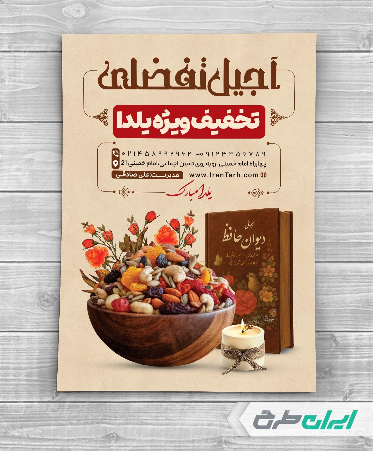 طرح تراکت آجیل فروشی تخفیفات یلدایی