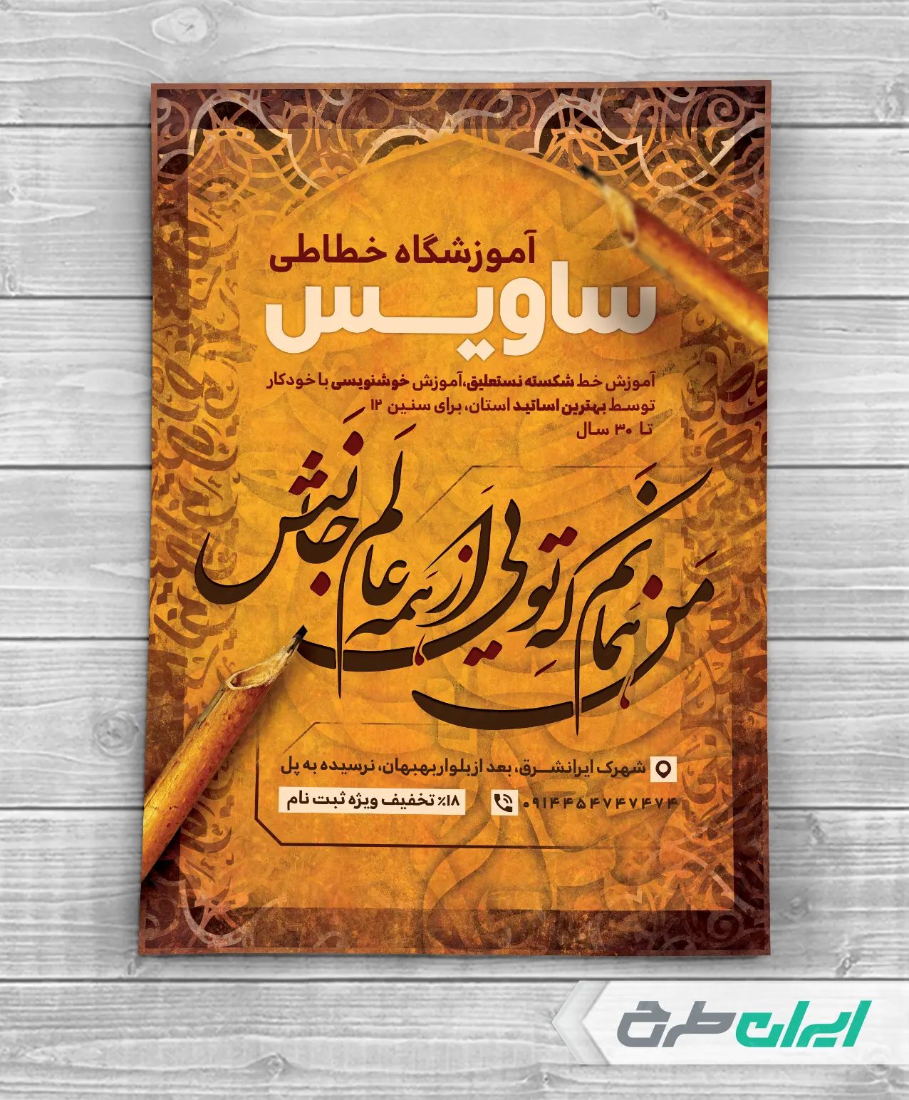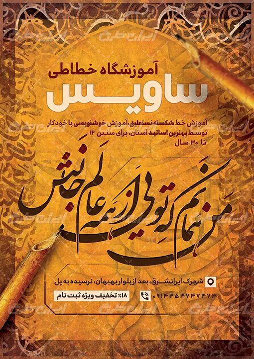 طرح تراکت آموزشگاه خوشنویسی شامل: