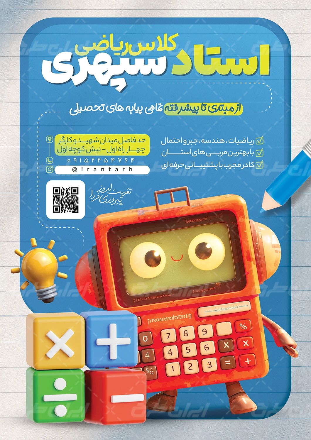 طرح تراکت لایه باز آموزشگاه ریاضی، جهت تبلیغات این آموزشگاه ها توسط طراحان ایران طرح طراحی و در دسترس کاربران سایت قرار گرفته است.