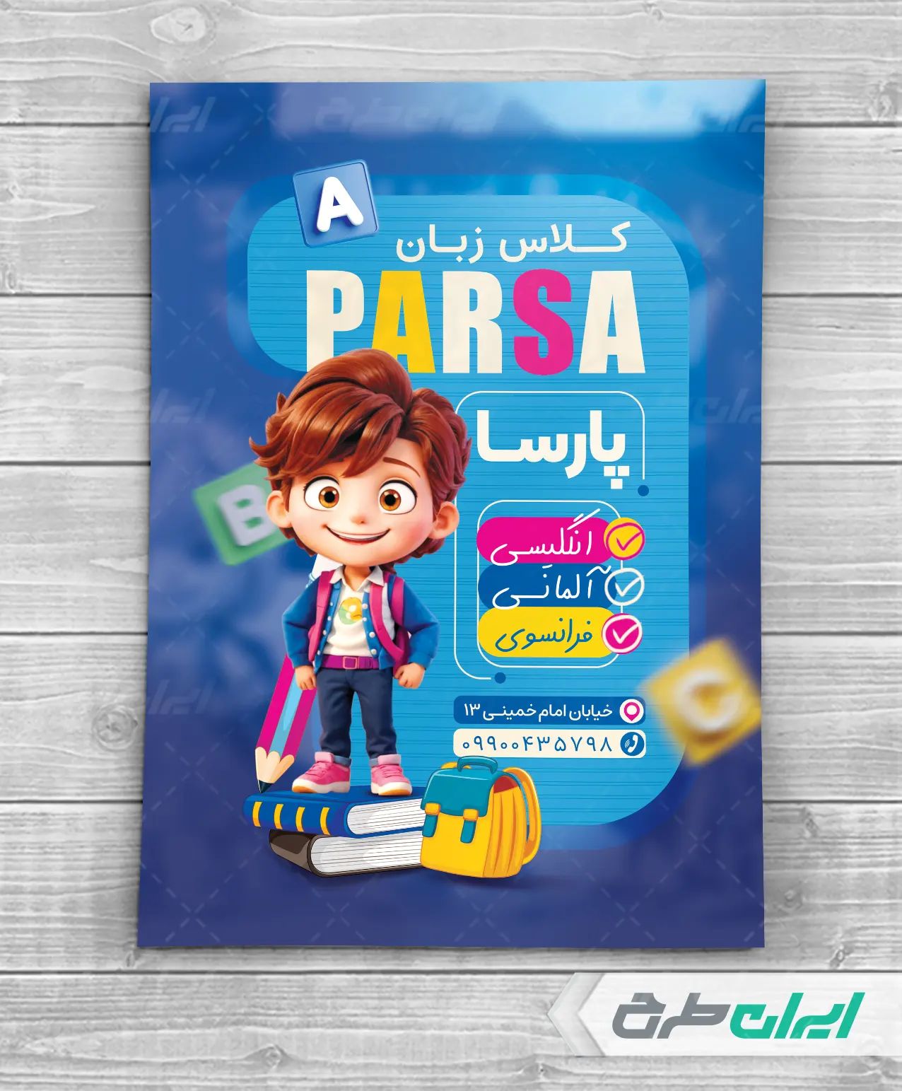 طرح لایه باز تراکت آموزشگاه زبان خارجه