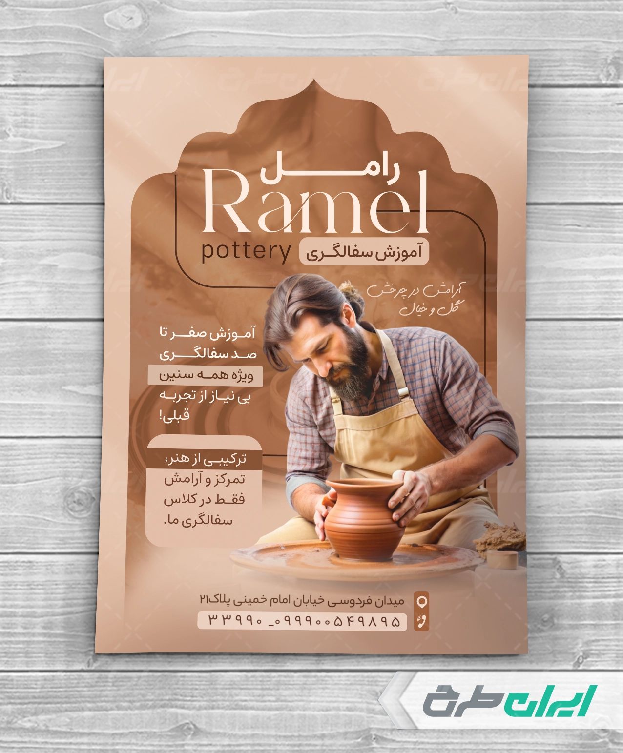 طرح لایه باز تراکت آموزشگاه سفالگری