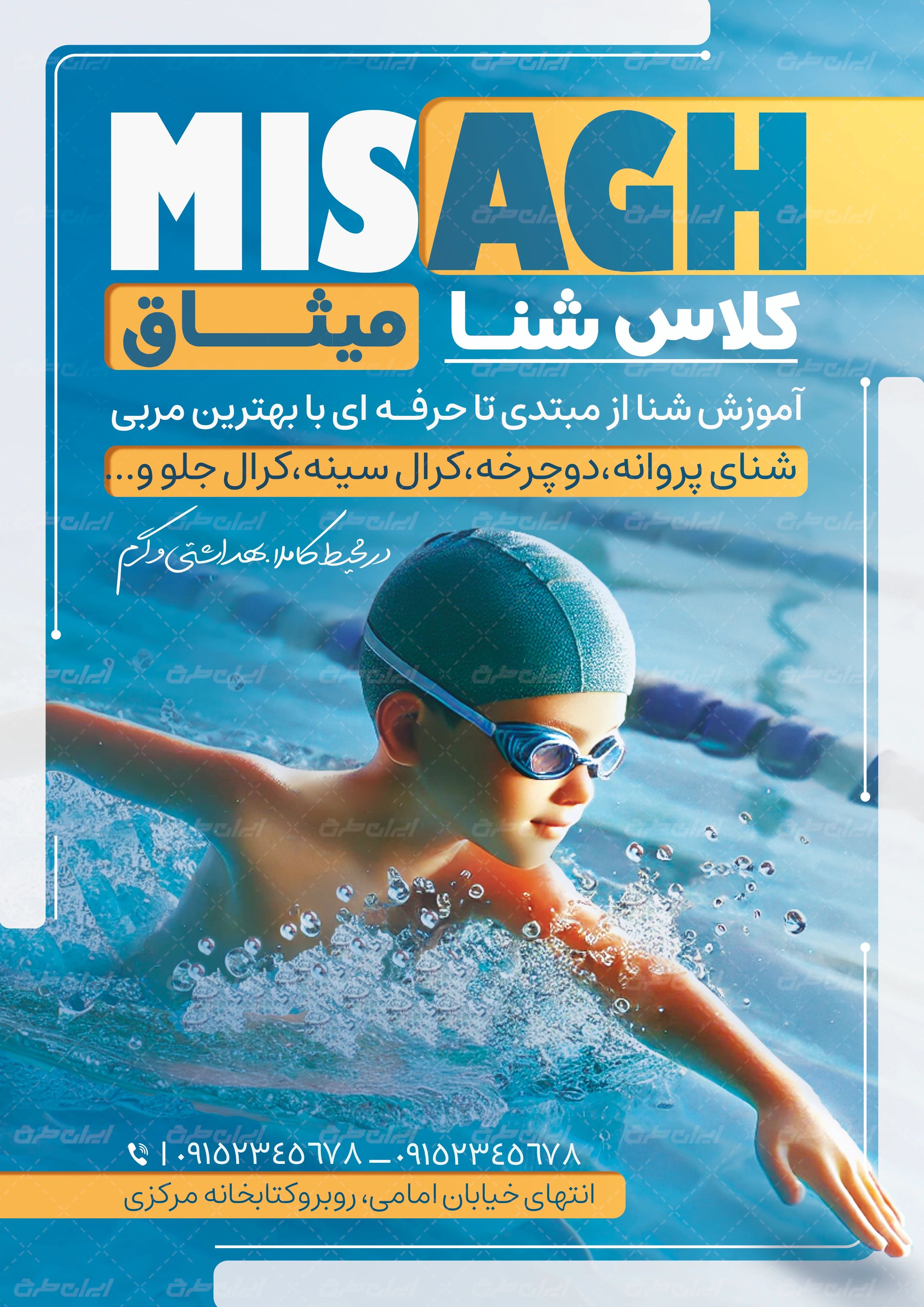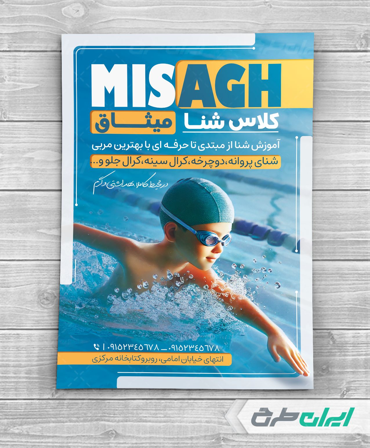 طرح تراکت استخر ، اموزش شنا و مجموعه آبی شامل: