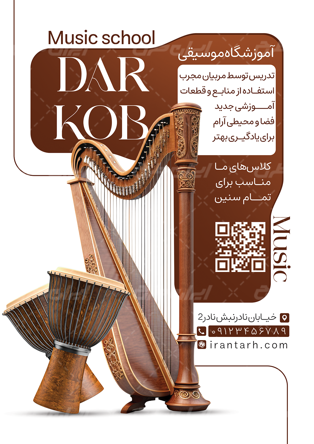 طرح تراکت آموزشگاه موسیقی شامل: