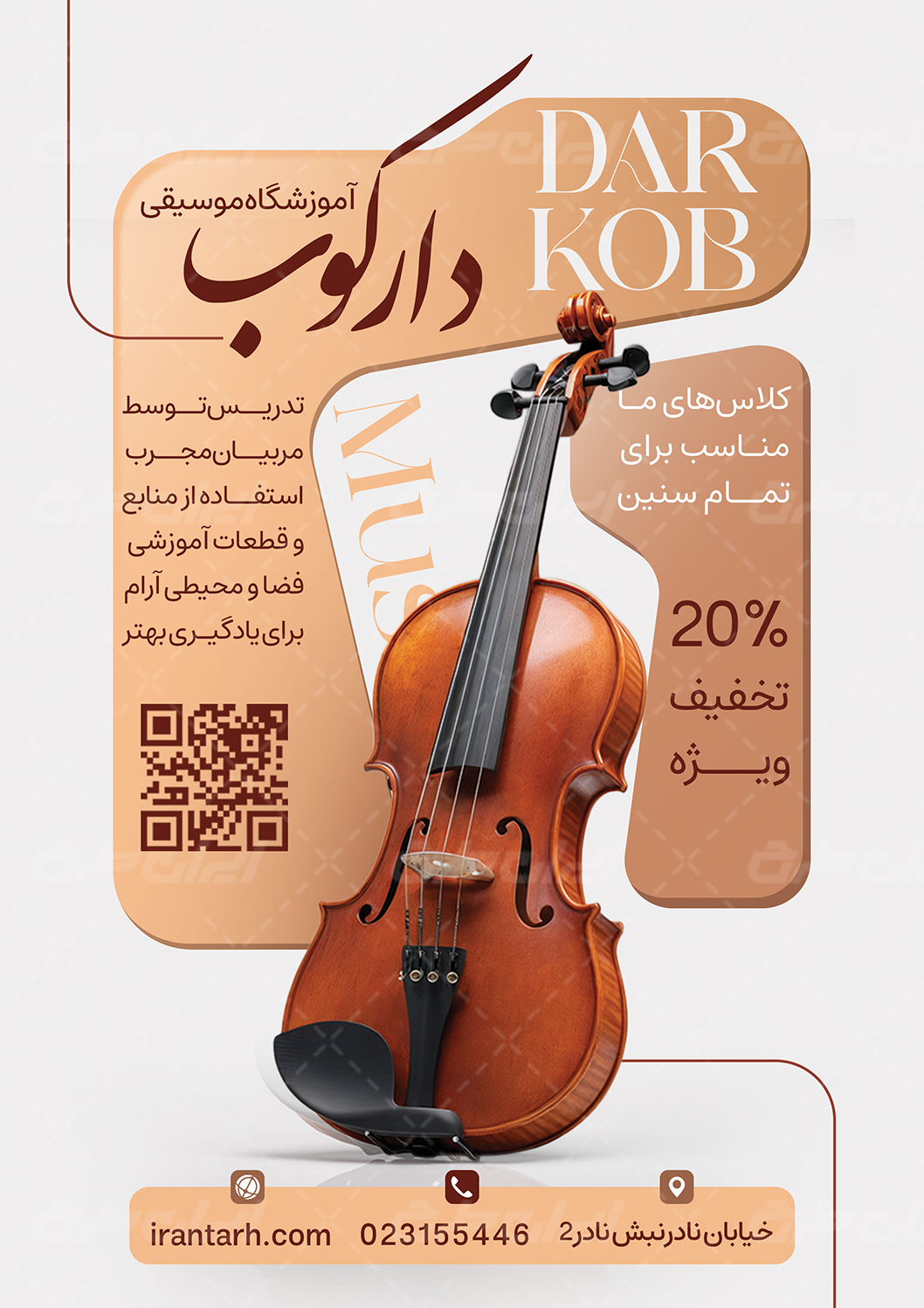 - استفاده مناسب از عکس باکیفیت ابزار آلات موسیقی در طرح تراکت آموزشگاه موسیقی