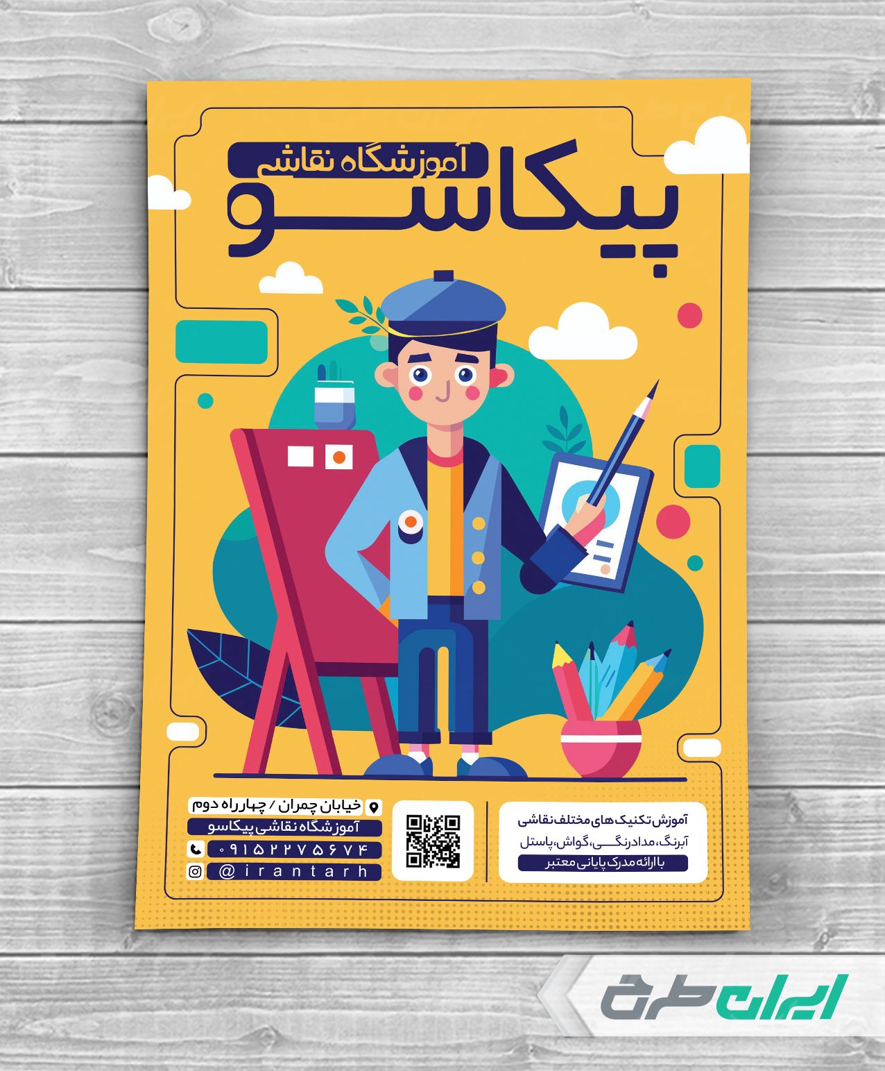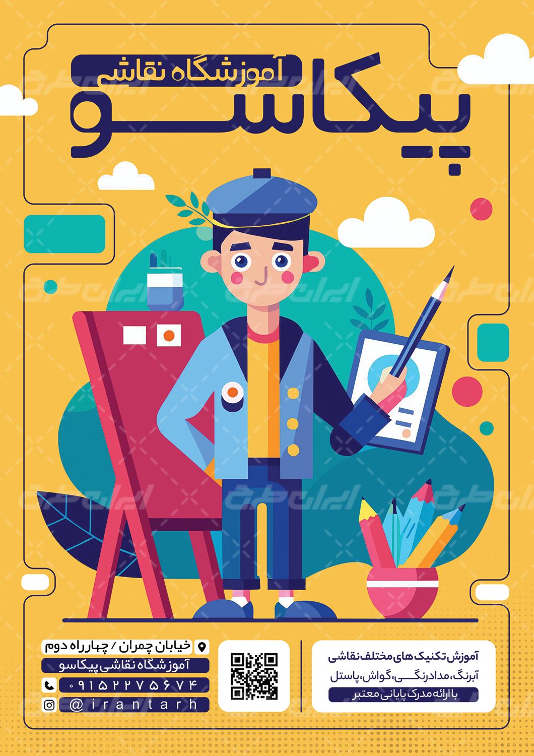 طرح تراکت آموزشگاه نقاشی، توسط تیم مجرب ایران طرح جهت تبلیغات و بازاریابی این دسته از آموزشگاه ها طراحی و در دسترس کاربران سایت قرار گرفته است.