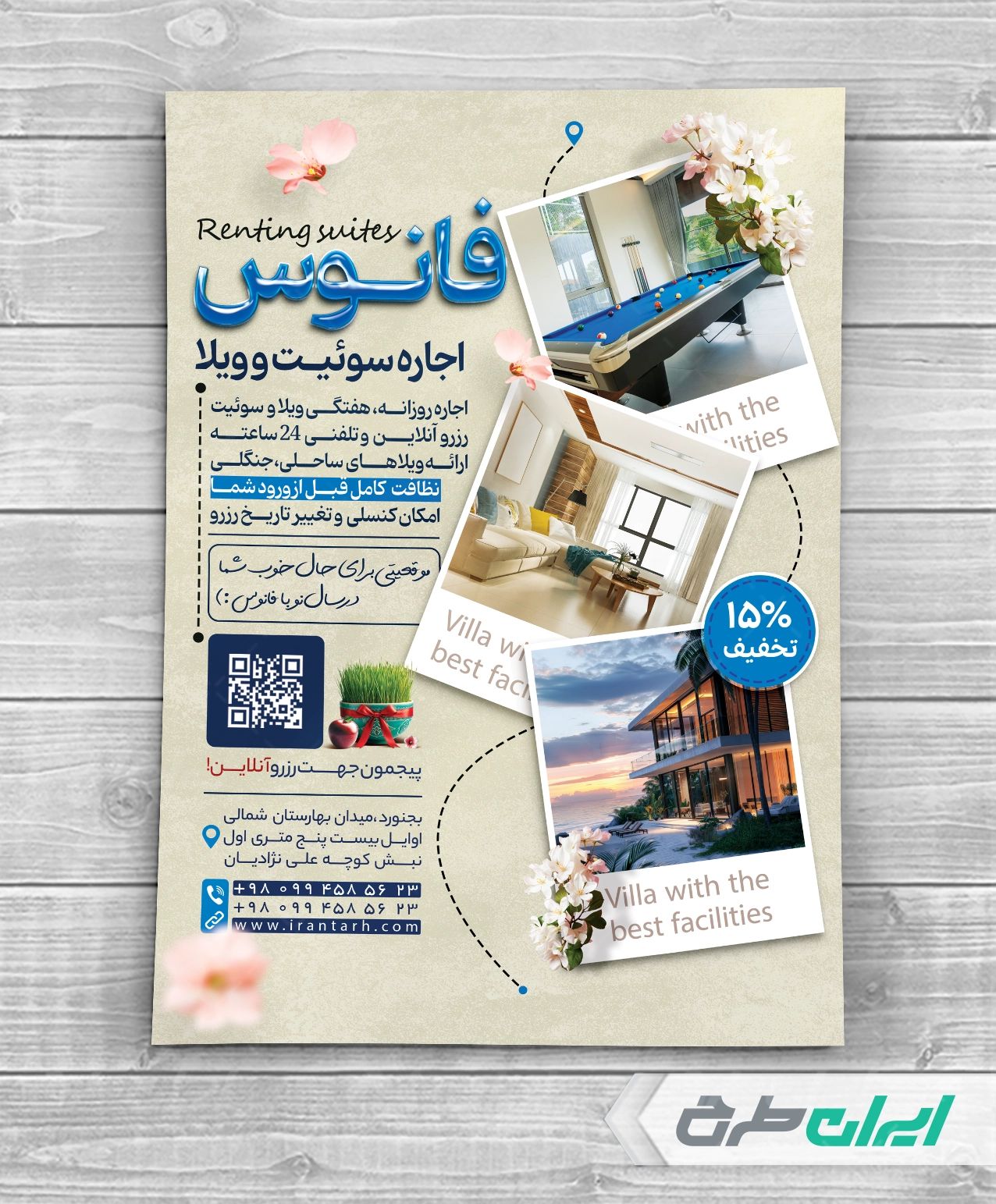 طرح لایه باز تراکت اجاره ویلا و سوییت