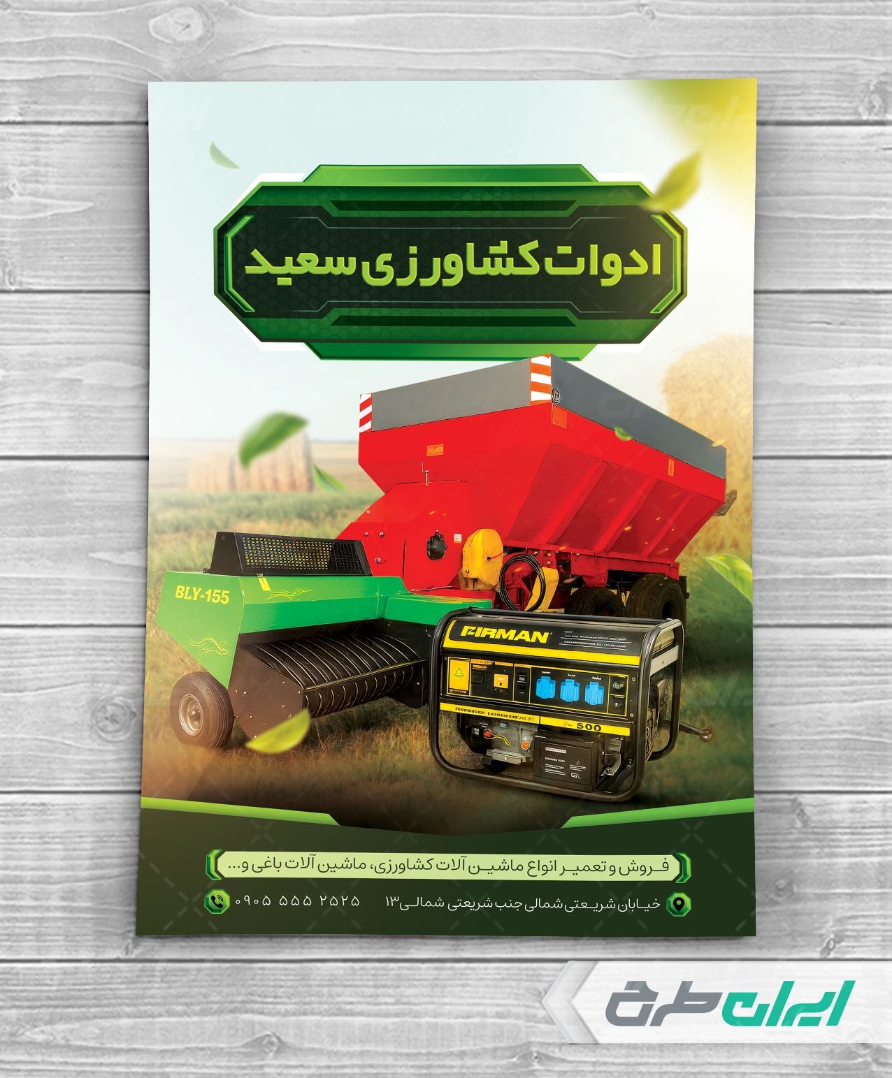 طرح تراکت فروشگاه ماشین آلات کشاورزی جهت بازاریابی و تبلیغات این نمایشگاه ها توسط ایران طرح طراحی و در دسترس کاربران سایت قرار گرفته است.