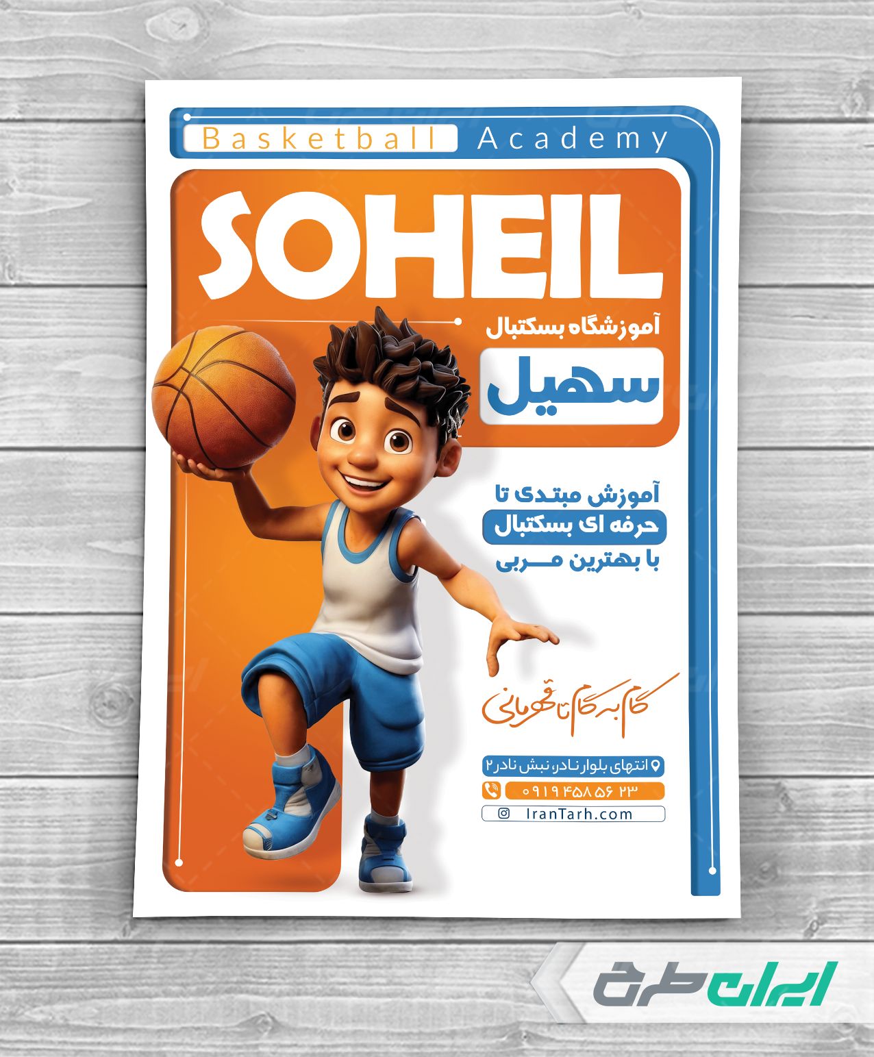 طرح تراکت آموزشگاه بسکتبال شامل: