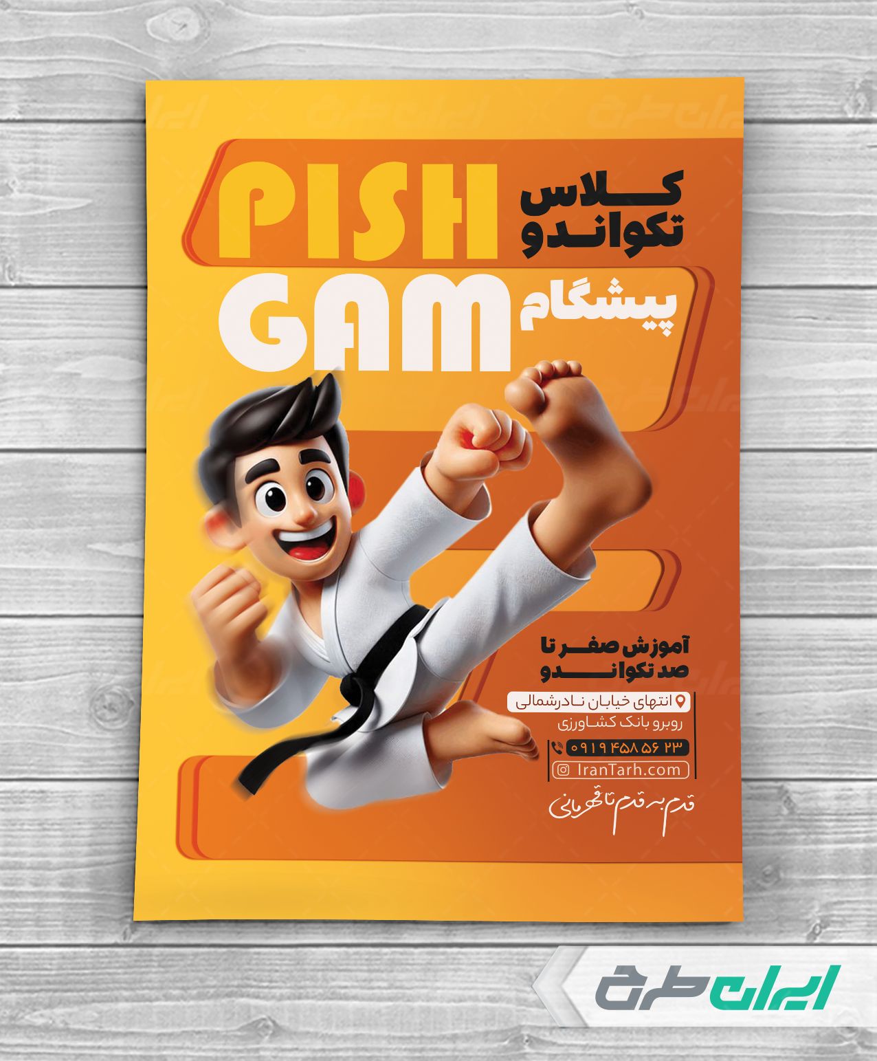 طرح تراکت لایه باز باشگاه تکواندو، جهت بازاریابی و تبلیغات این دسته از مشاغل توسط ایران طرح طراحی و در اختیار کاربران سایت قرار گرفته است.