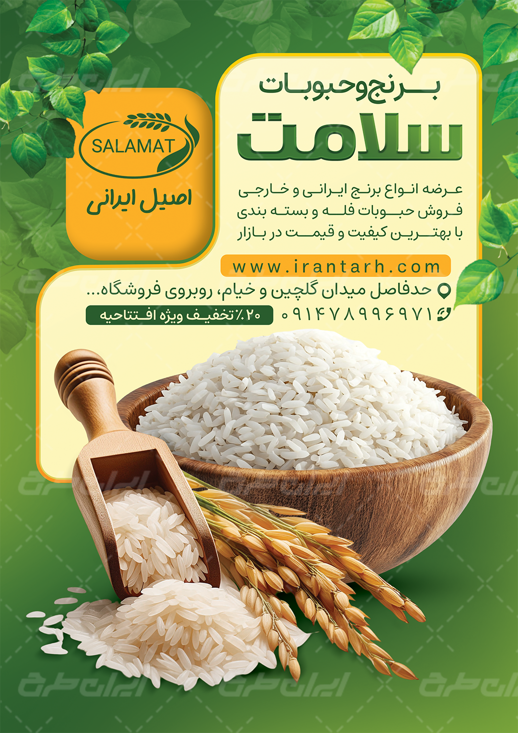 عناصر طرح تراکت لایه باز فروشگاه برنج و حبوبات