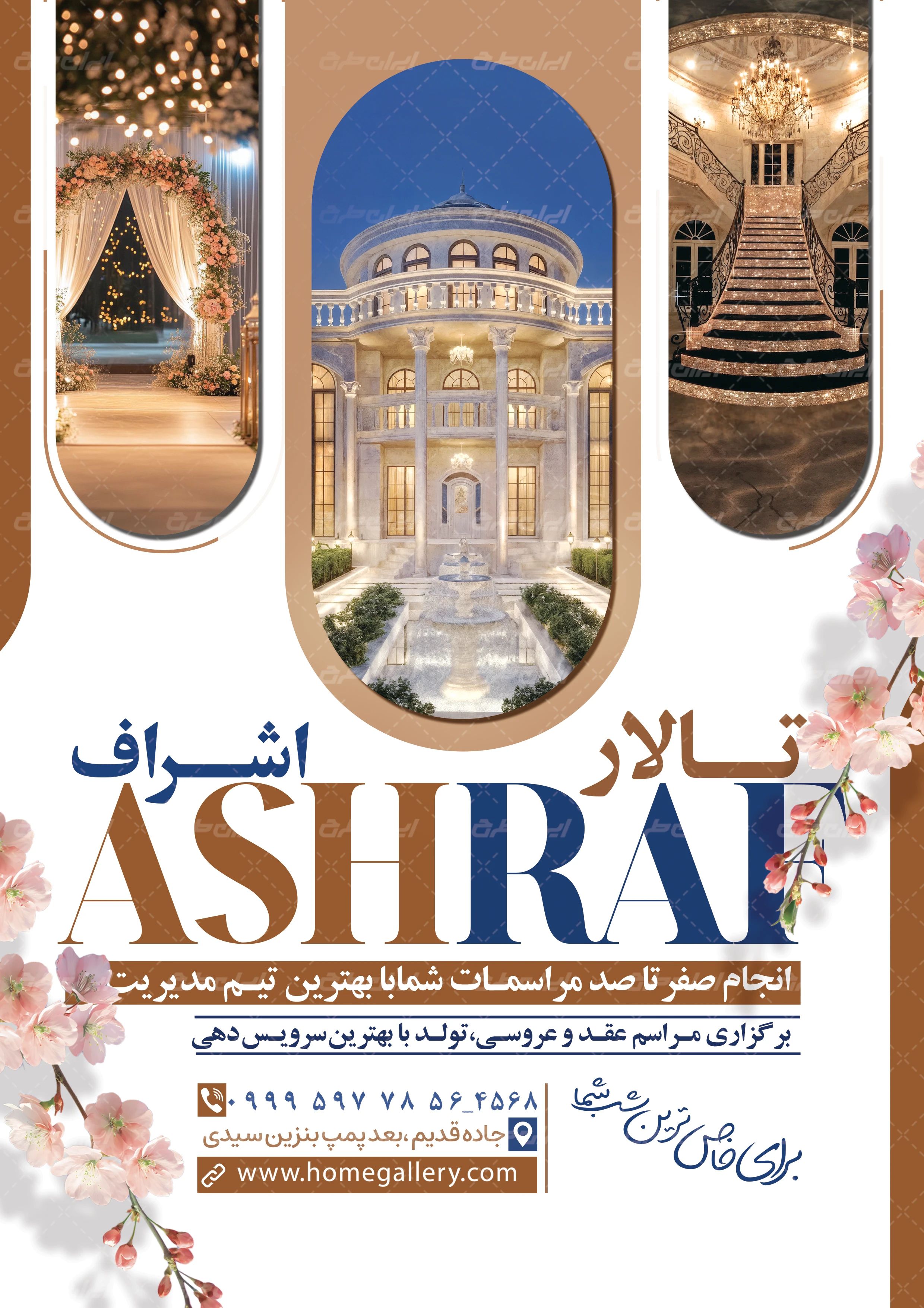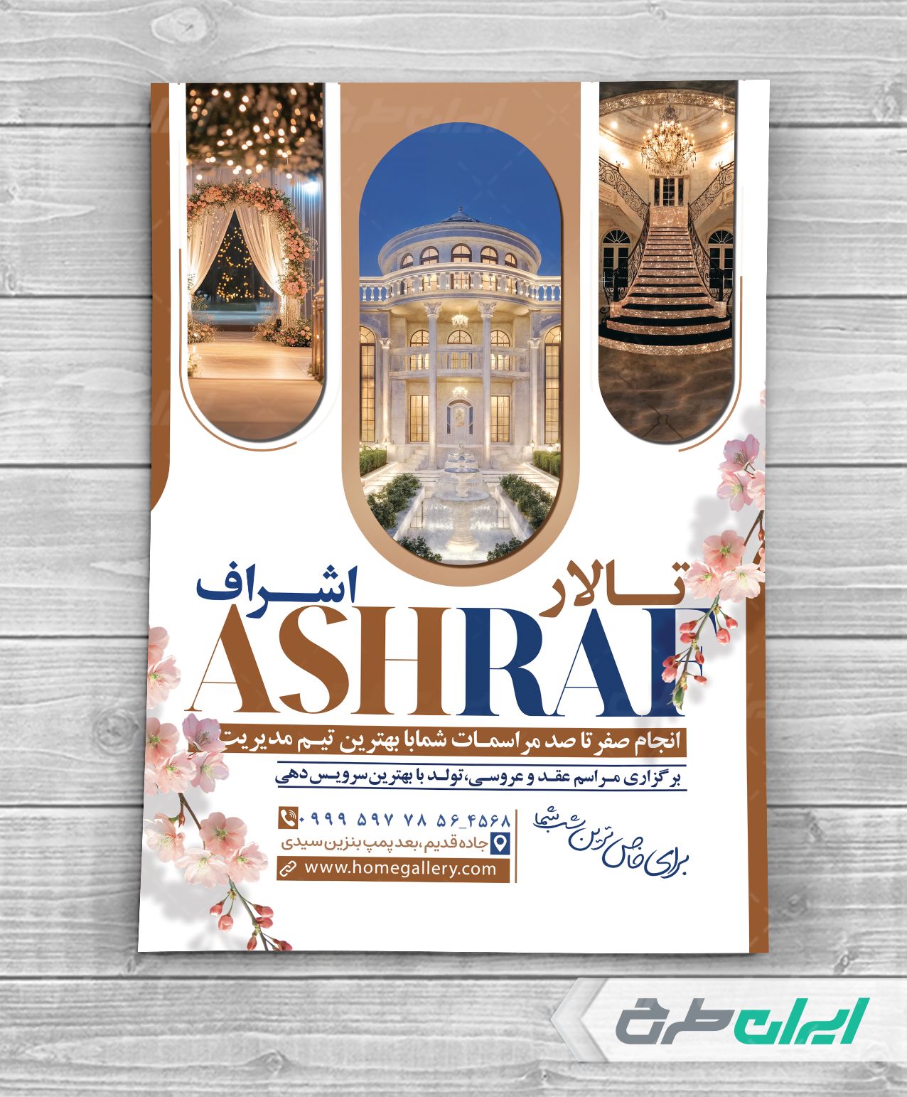 - استفاده مناسب از عکس باکیفیت تزئینات تالار پذیرایی در طرح تراکت تالار پذیرایی