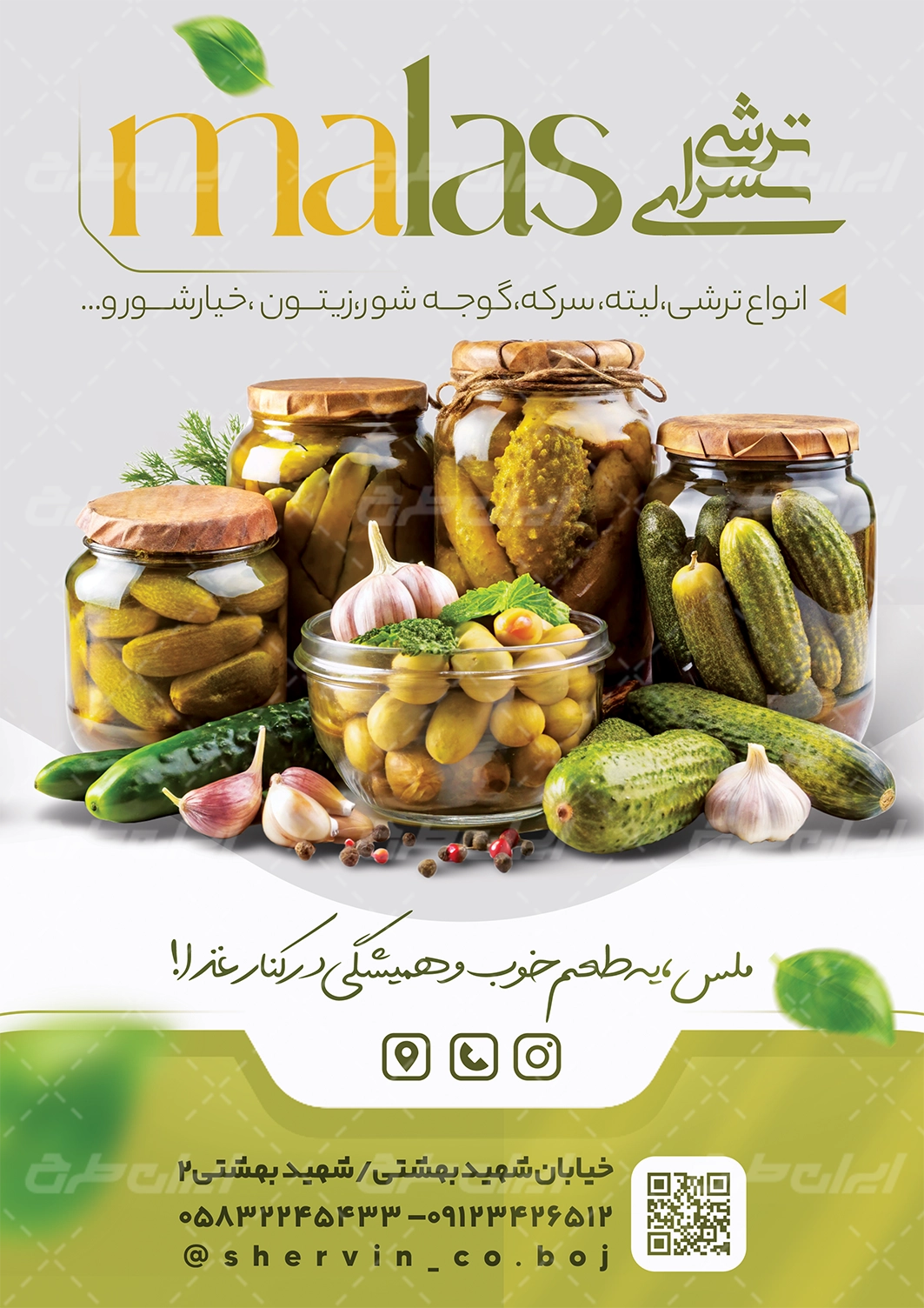 طرح تراکت فروشگاه ترشی و مربا شامل: