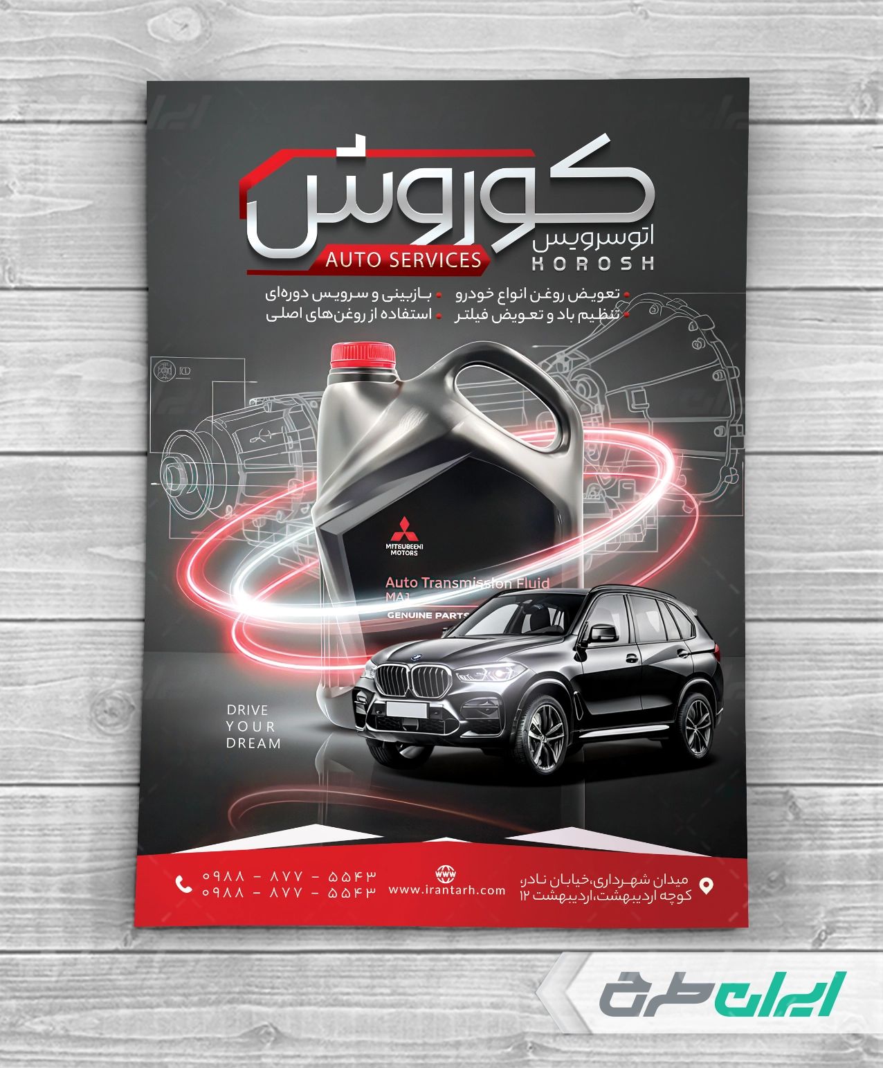 - استفاده از عکس با کیفیت ماشین که مناسب با طرح تراکت تعویض روغنی می باشد.