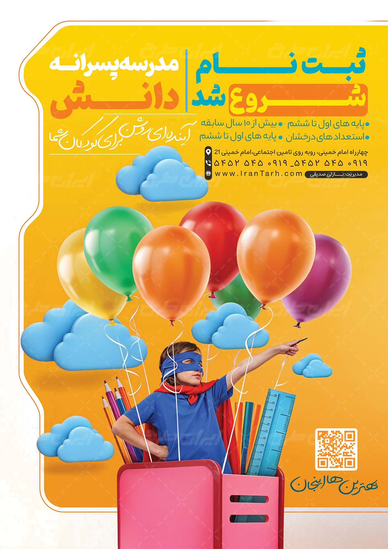- طراحی شیک و فانتزی تراکت که مناسب شغل ثبت نام دبستان می باشد.