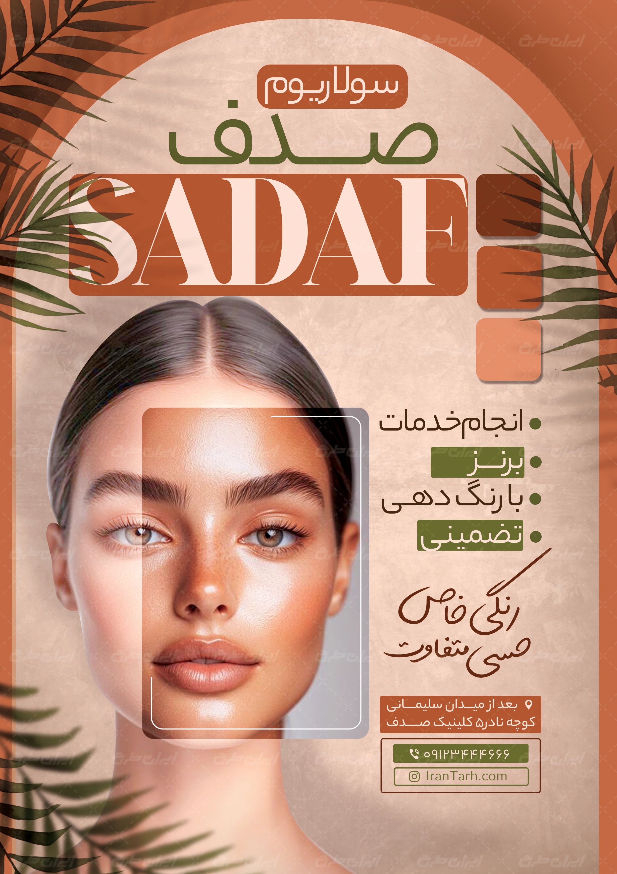 - استفاده مناسب از عکس با کیفیت مدل برنز در طرح تراکت کلینیک سولاریوم