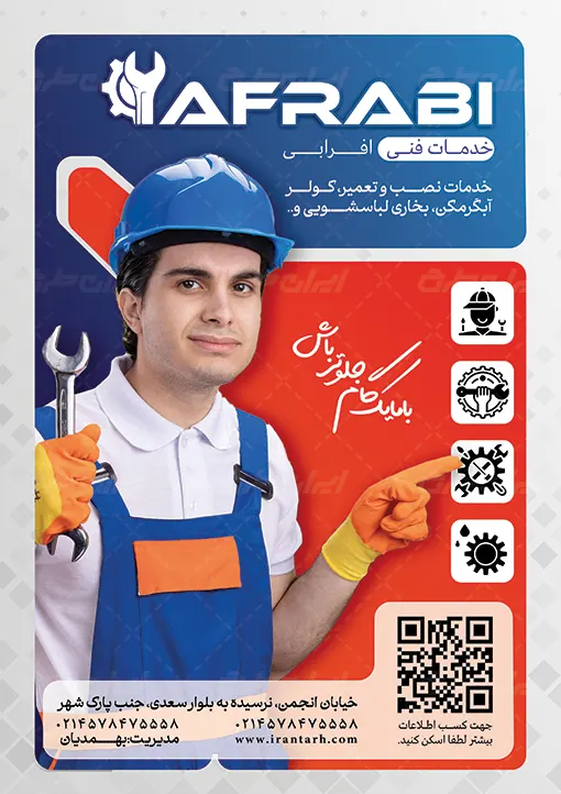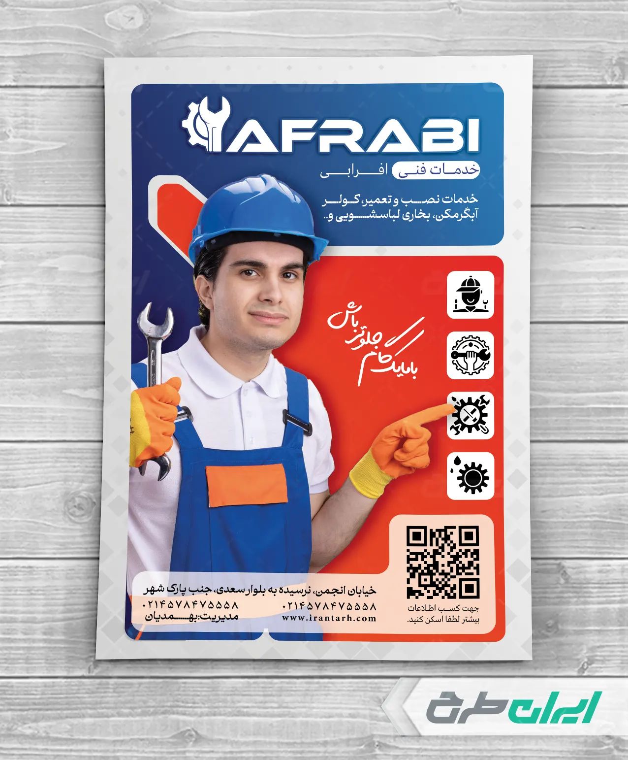 - استفاده مناسب از تصویر تعمیرکار در طرح تراکت فروشگاه لوازم سرمایشی
