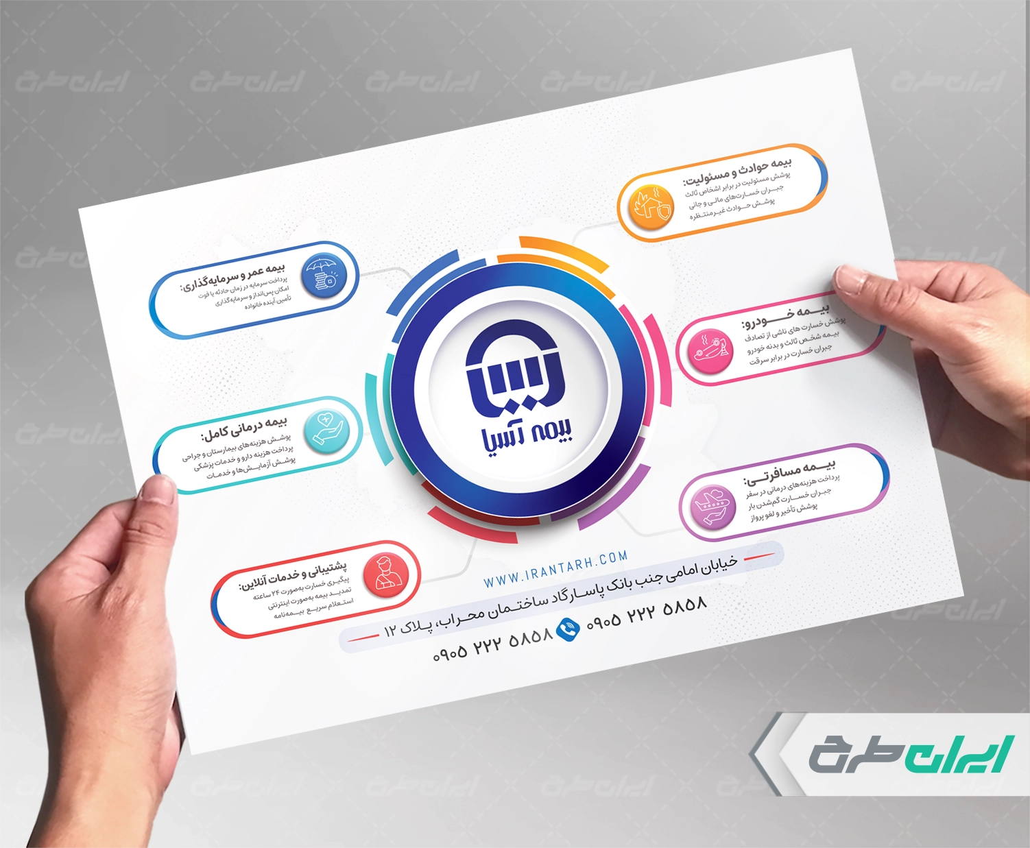 - طراحی شیک و کاربردی تراکت بیمه آسیا