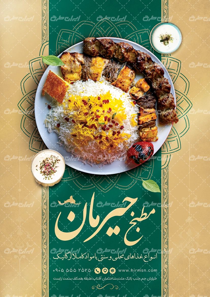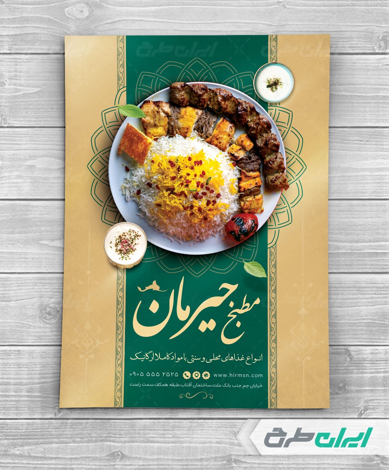 - استفاده از عکس باکیفیت غذای ایرانی که مناسب طرح تراکت رستوران می باشد.