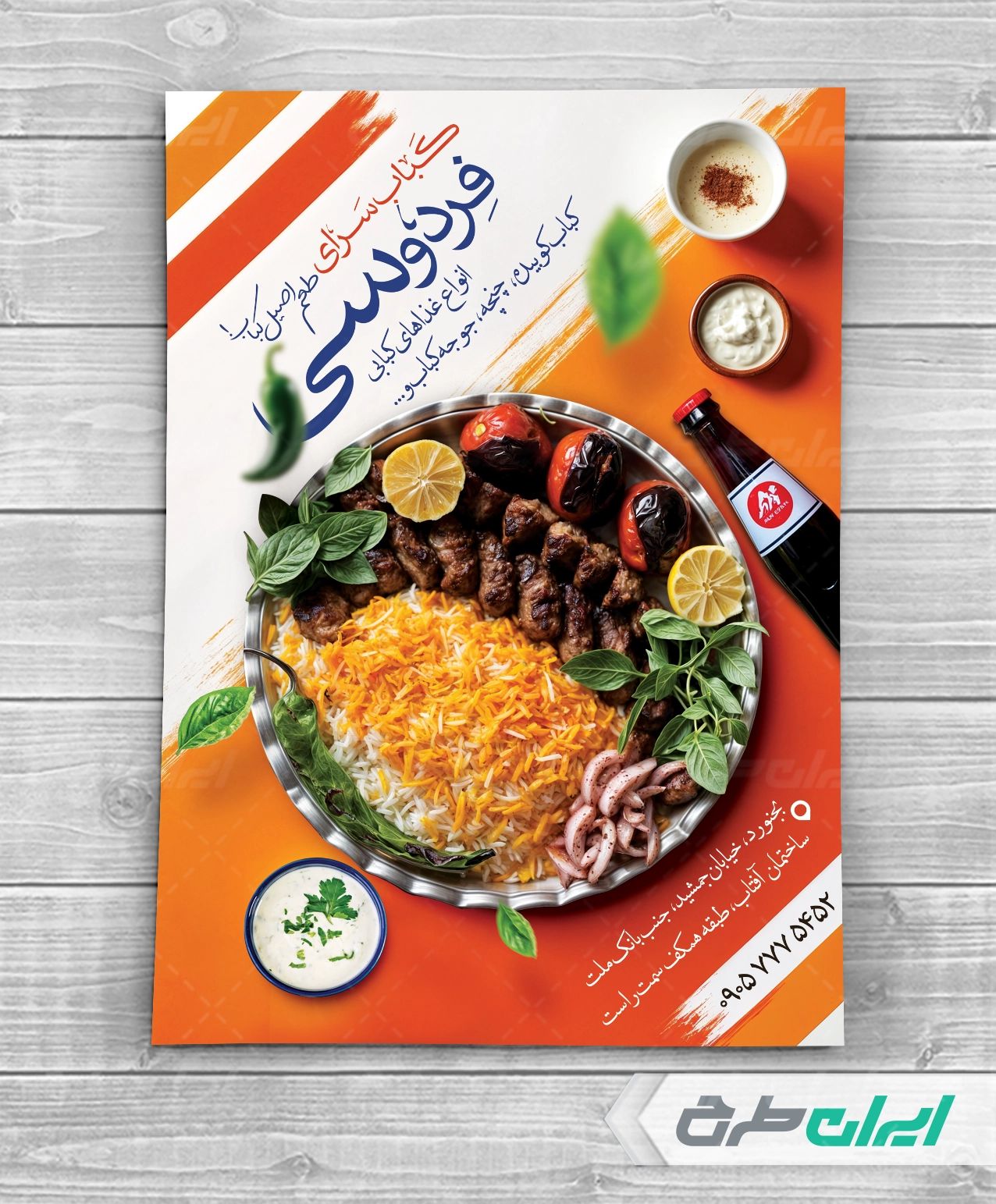 طرح تراکت لایه باز رستوران، توسط تیم ایران طرح برای بازاریابی و تبلیغات این دسته از مشاغل طراحی شده است.