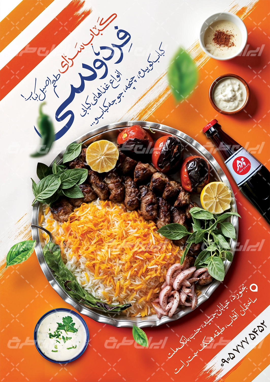- استفاده از عکس باکیفیت چلو کباب که مناسب طرح تراکت رستوران می باشد.