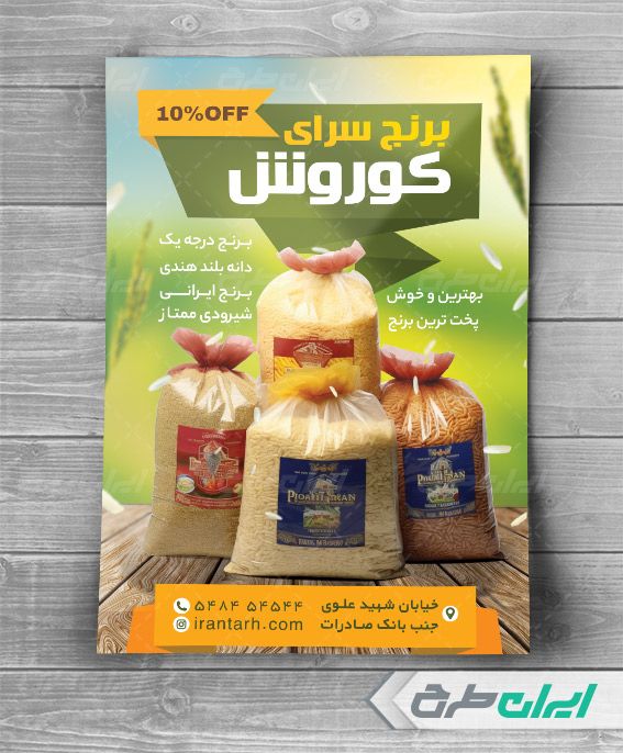 - طراحی ساده و کاربردی تراکت لایه باز فروشگاه برنج