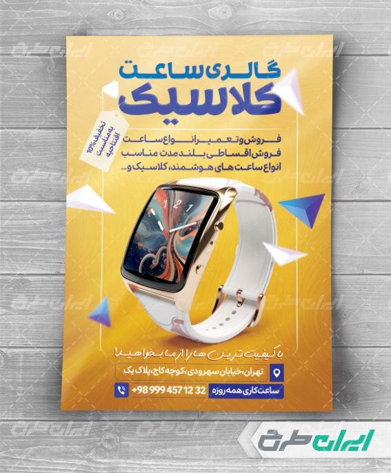 ایران طرح طرح تراکت ساعت فروشی را جهت تبلیغات و بازاریابی این فروشگاه ها، طراحی و در دسترس کاربران سایت قرار داده است.