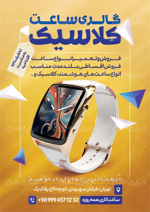 - طراحی ساده و شیک طرح تراکت ساعت فروشی