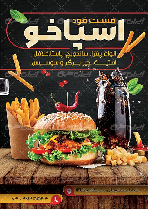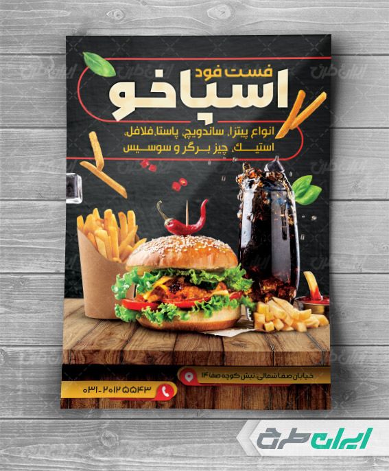 طرح تراکت فست فود جهت استفاده در سردر این دسته از فروشگاه ها توسط طراحان پارس گرافیک طراحی، و در دسترس کاربران سایت قرار گرفته است.