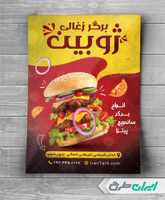 طرح تراکت فست فود شامل: عکس با کیفیت همبرگر ،تصویر مرتبط با طرح فست فود، فست فود، لیبل و شیپ های کاربردی می باشد که توسط طراحان ایران طرح در نرم افزار فتوشاپ طراحی شده است. به دلیل لایه باز بودن (قابل ویرایش توسط کاربران در نرم افزار فتوشاپ Adobe Photoshop) بودن و کیفیت بالای عناصر و المان های استفاده شده در طرح تراکت رنگی ، می توانید از این طرح علاوه بر چاپ تراکت(به صورت عمودی)، از سایر موارد تبلیغاتی از جمله نصب روی بیلبورد، استوری اینستاگرام و دیگر پلت فرم های فضای مجازی بهره ببرید.