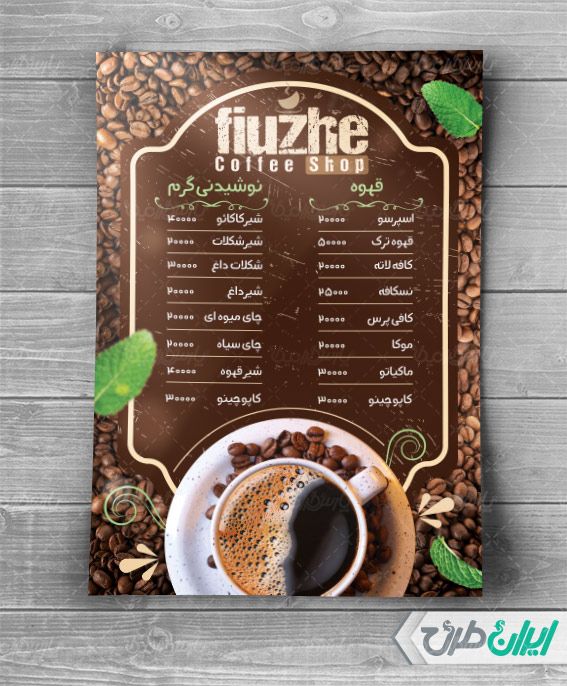 مشخصات فنی طرح تراکت لایه باز رنگی منو کافه قهوه سرا