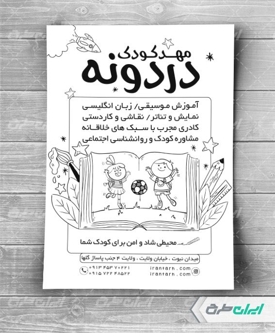 طرح تراکت ریسو مهد کودک، توسط تیم ایران طرح جهت تبلیغات و بازاریابی این مکان ها طراحی و در دسترس کاربران سایت قرار گرفته است.
