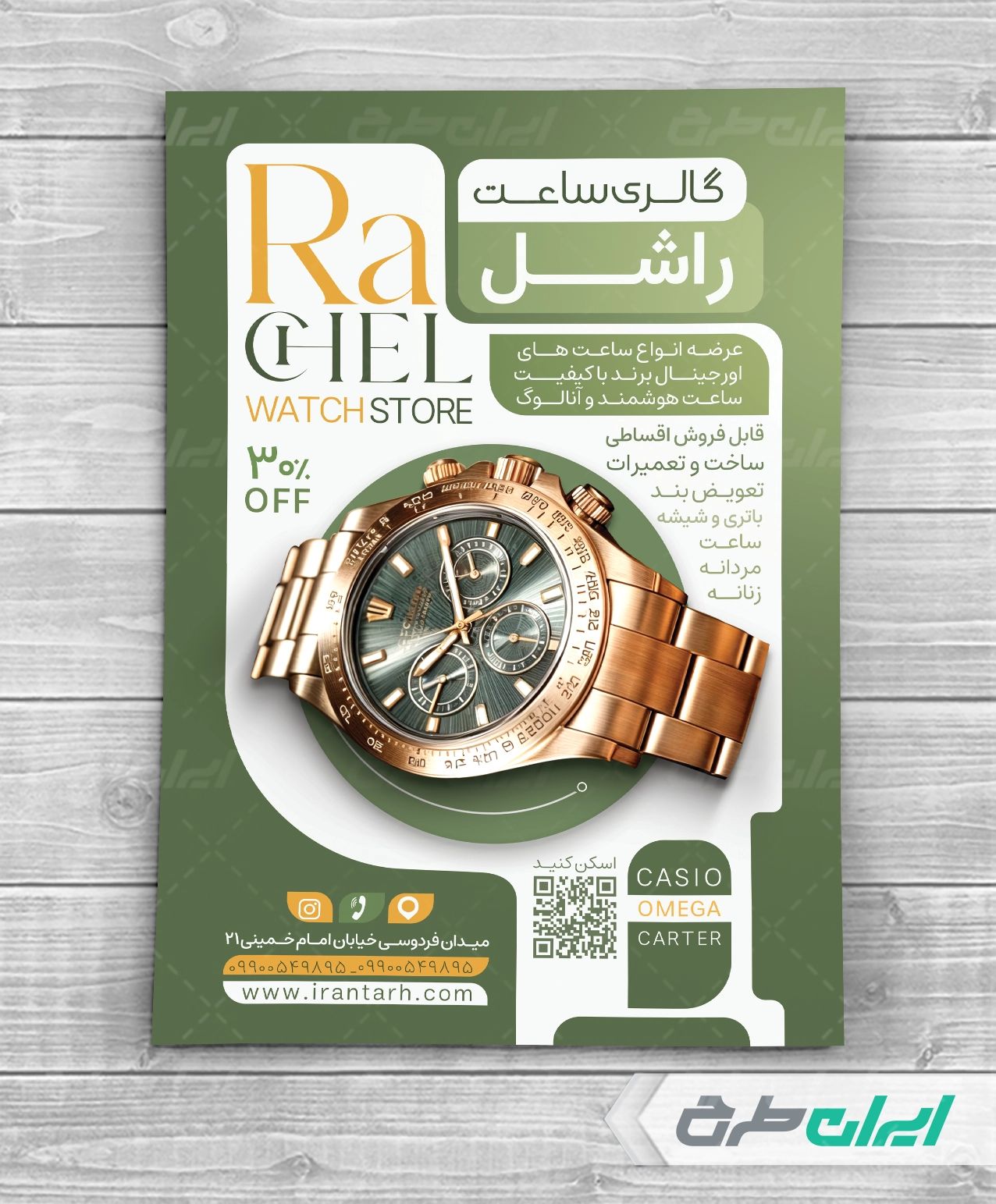- طراحی ساده و شیک طرح تراکت ساعت فروشی