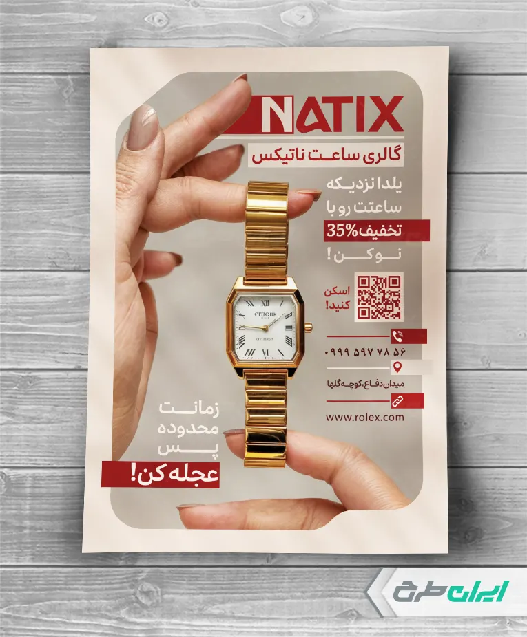 - طراحی ساده و شیک طرح تراکت ساعت فروشی