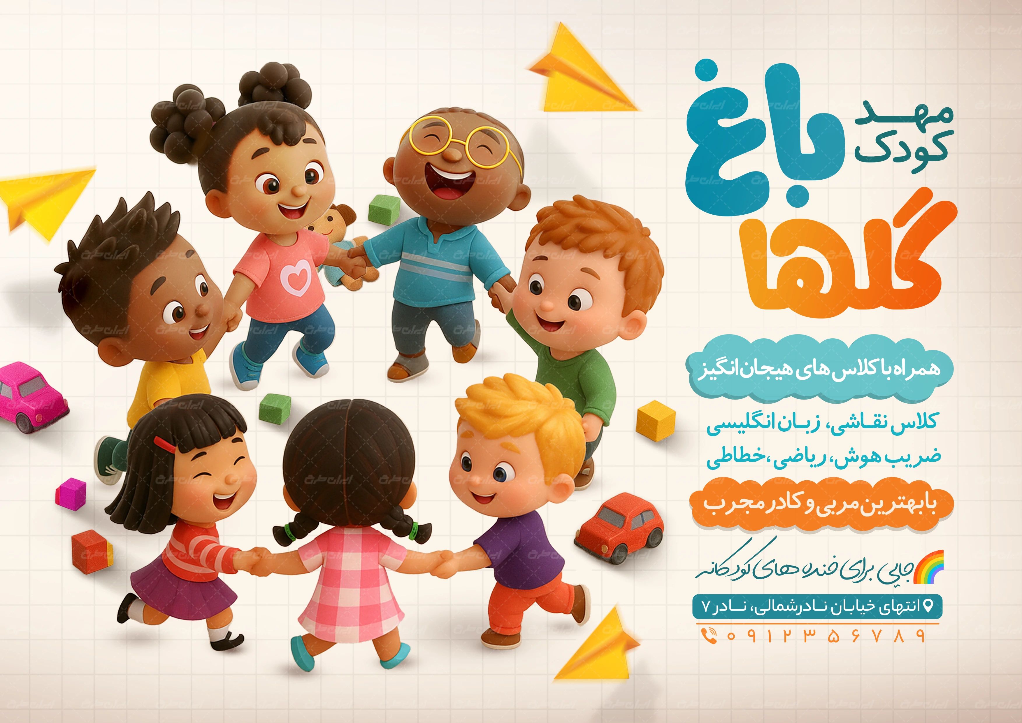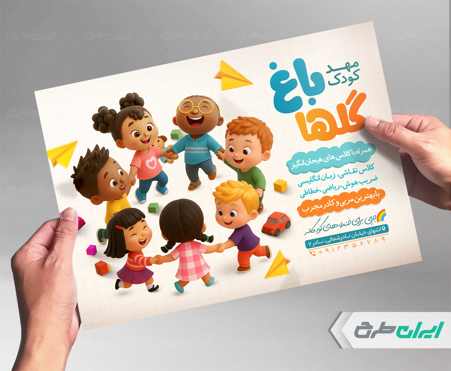 طرح تراکت لایه باز مهدکودک و پیش دبستانی جهت تبلیغات و بازاریابی این دسته از مشاغل توسط تیم ایران طرح طراحی شده است.