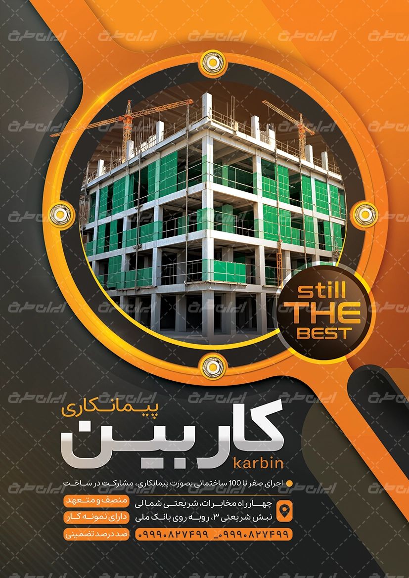 طرح تراکت لایه باز شرکت پیمانکاری، توسط تیم ایران طرح برای بازاریابی و تبلیغات این دسته از مشاغل طراحی شده است.