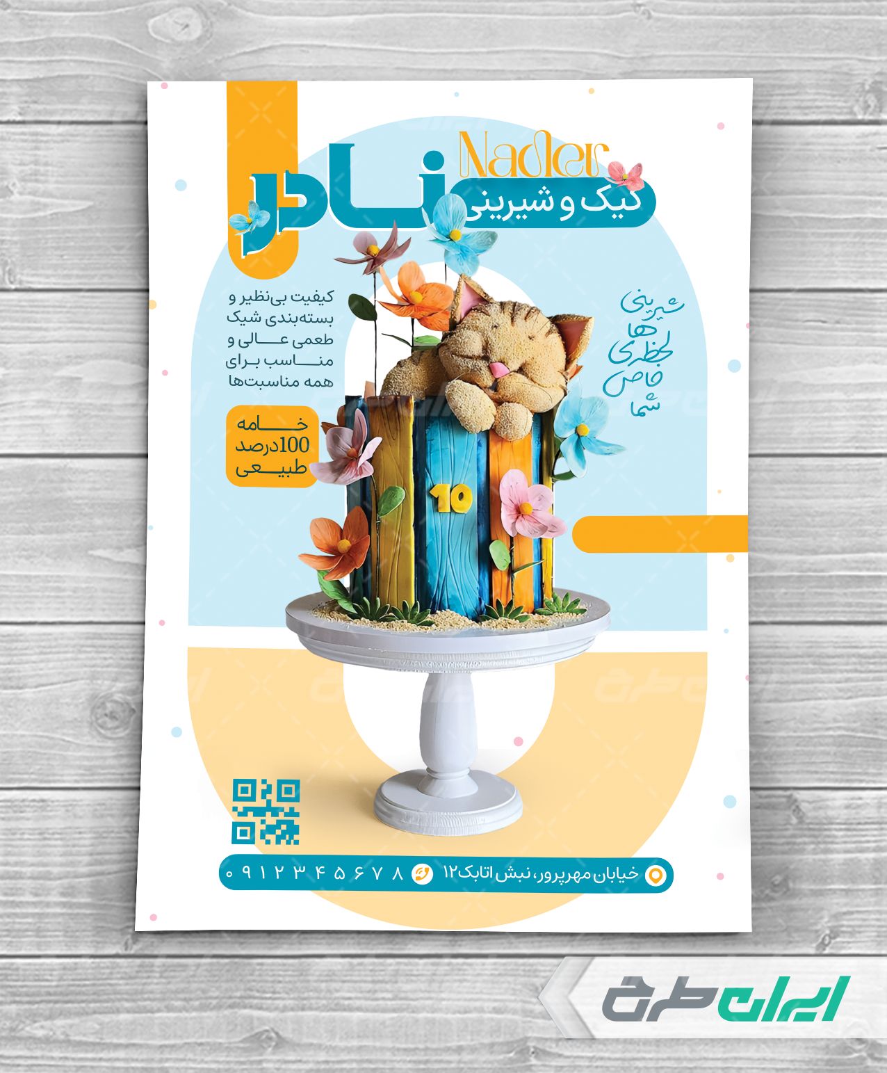 طرح لایه باز تراکت شیرینی فروشی و قنادی