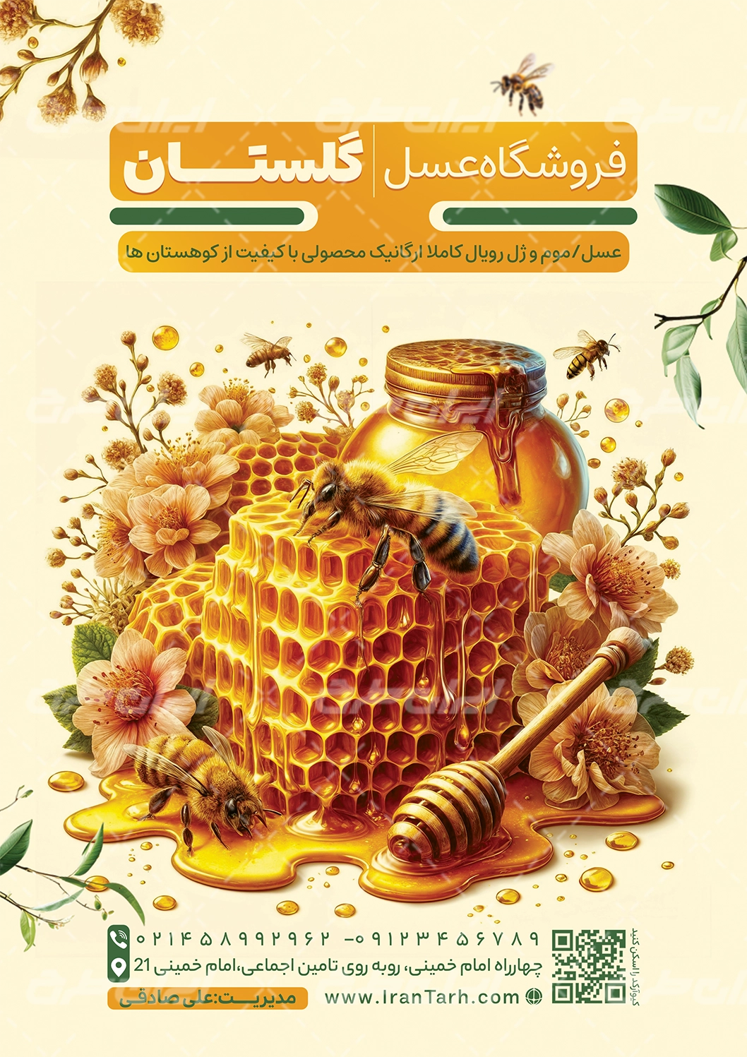 طرح تراکت لایه باز عسل فروشی، جهت بازاریابی و تبلیغات این دسته از مغازه ها توسط تیم طراحان ایران طرح طراحی و در دسترس کاربران سایت قرار گرفته است.